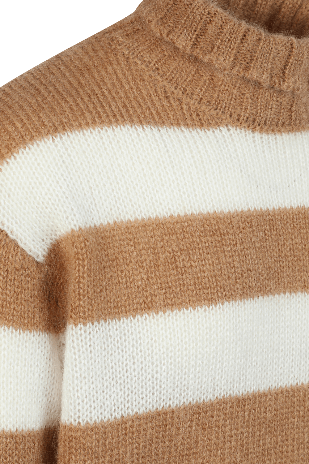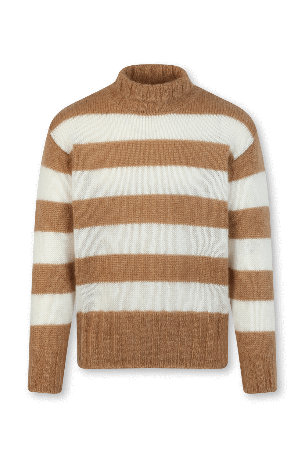 סריג צמר עם צווארון גבוה בגווני חום ולבן