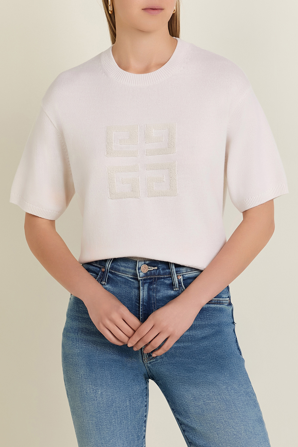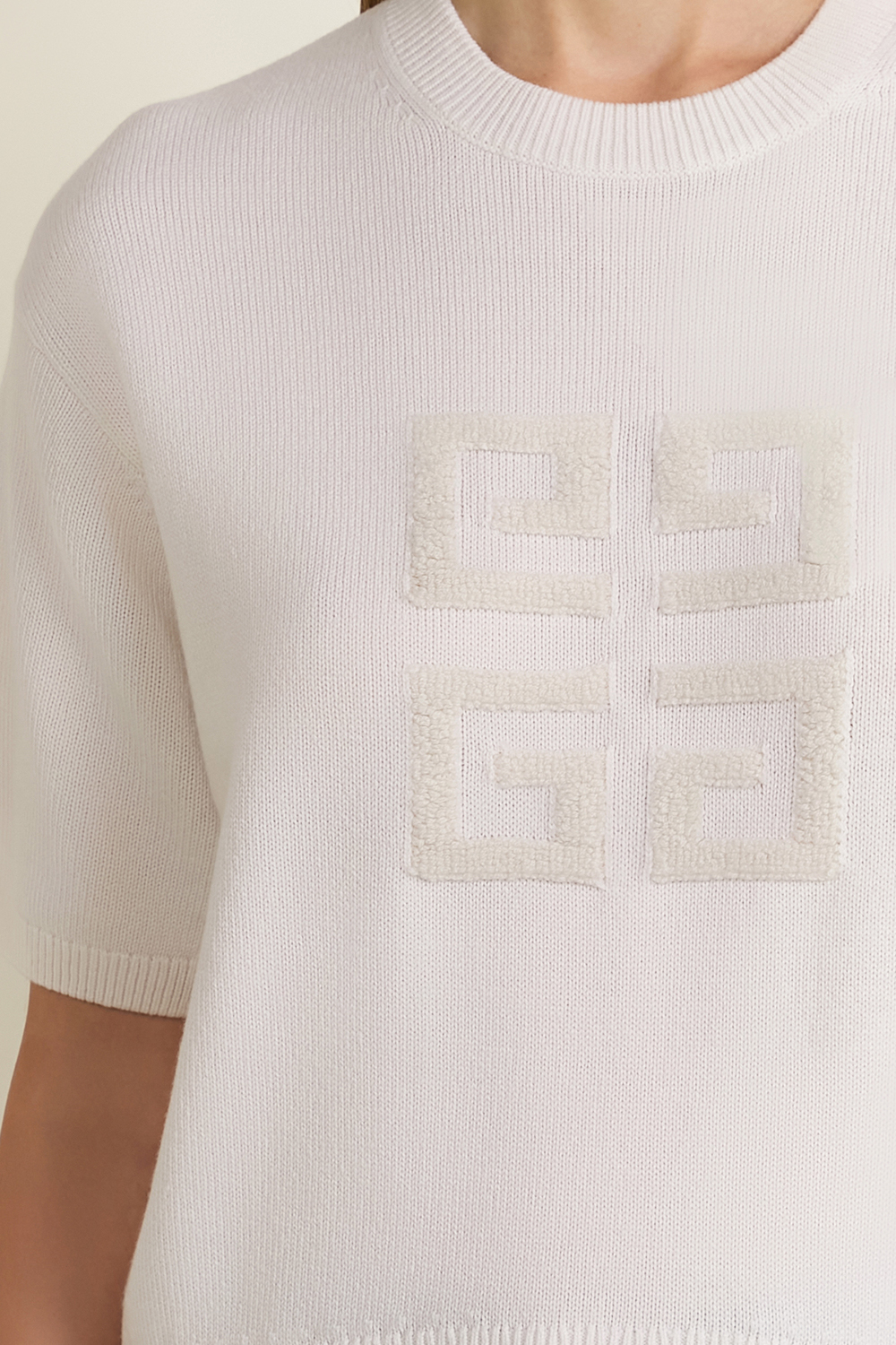 סריג קצר מבית Givenchy - מושלם לעונות המעבר, עשוי צמר קשמיר רך ונעים בצבע לבן בשילוב לוגו.