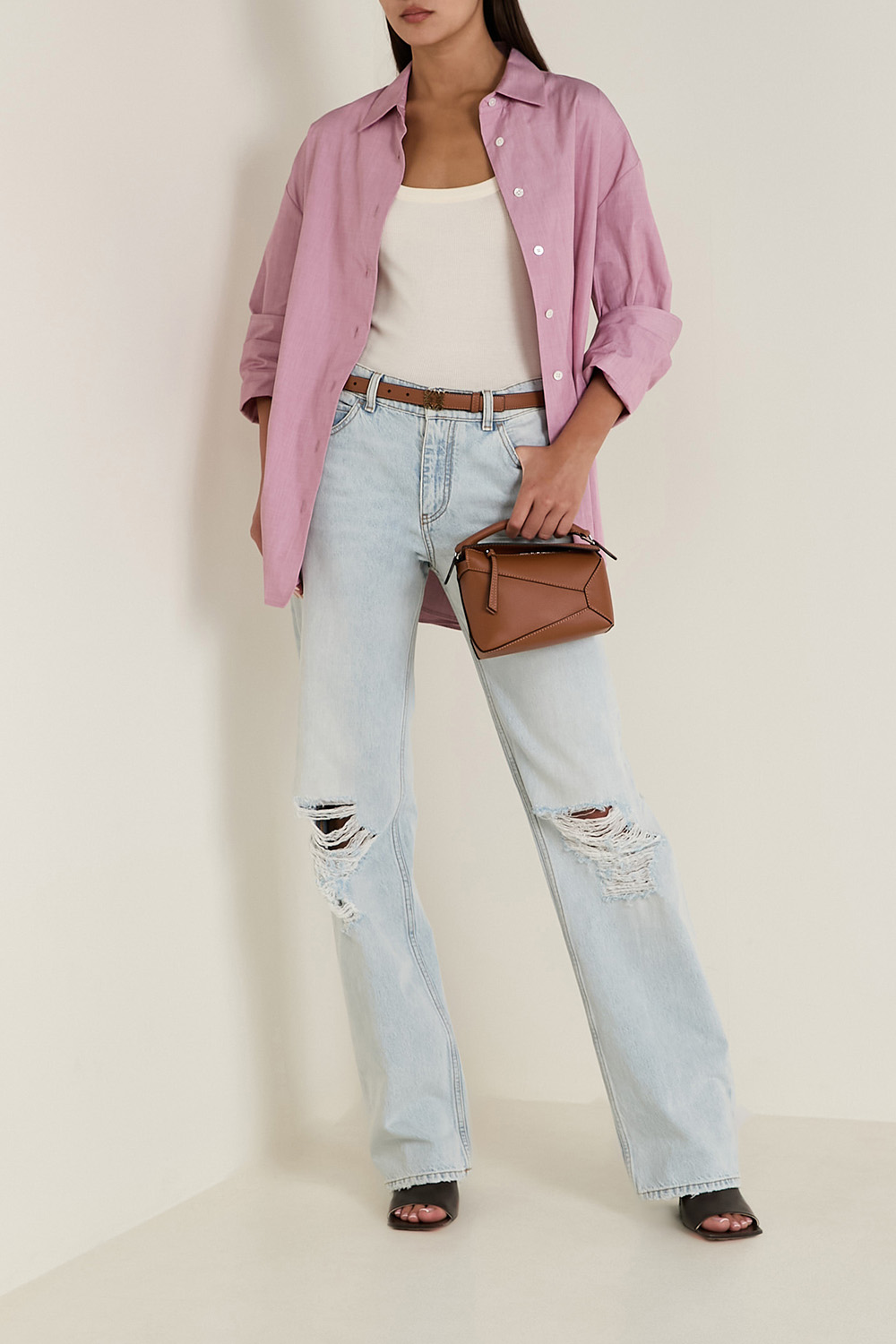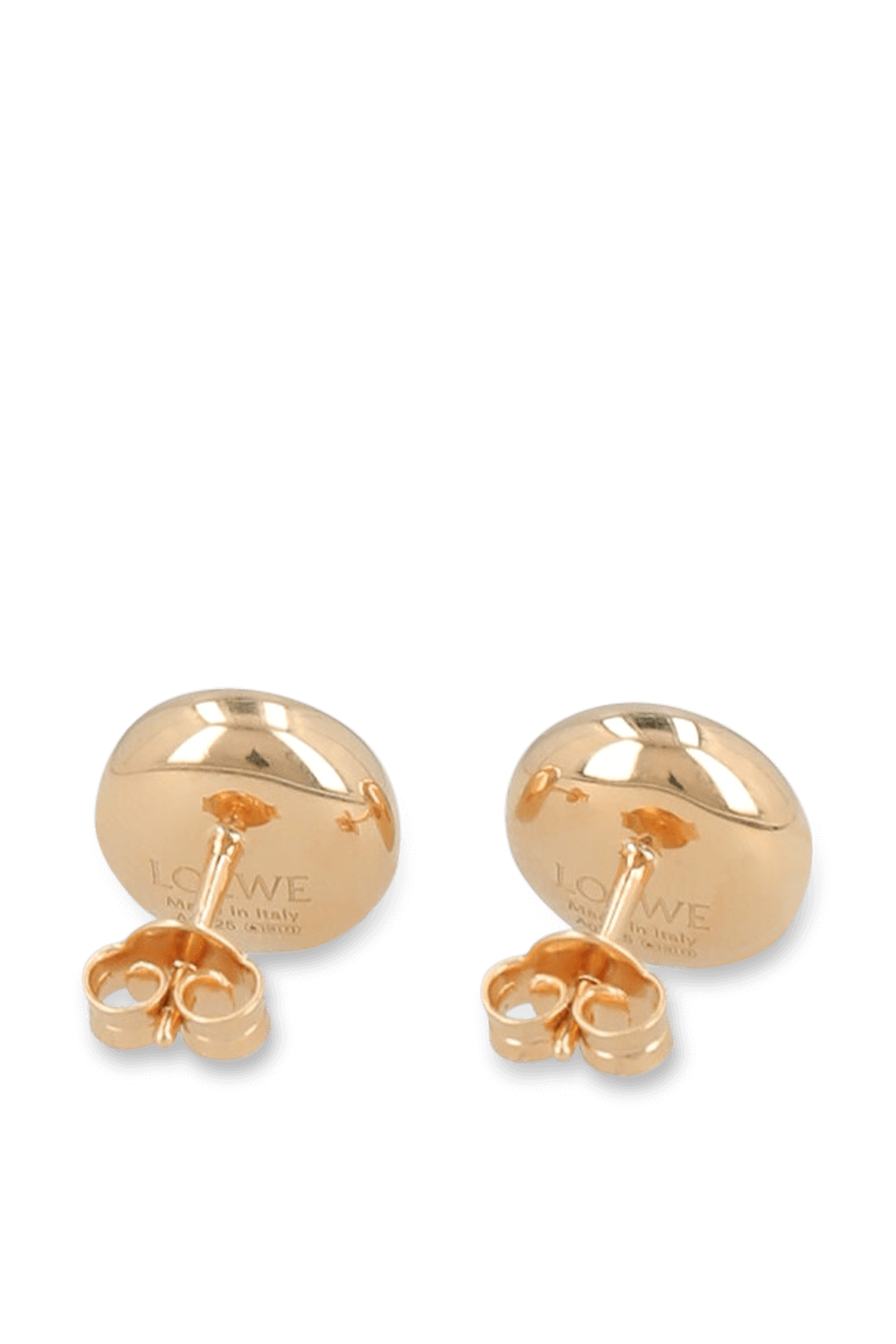עגילים צמודי אוזן מבית Loewe מעוצבים בצורת חלוקי נחל, עשויים כסף סטרלינג בגימור זהב. לוגו המוצג מוטבע במרכזם.