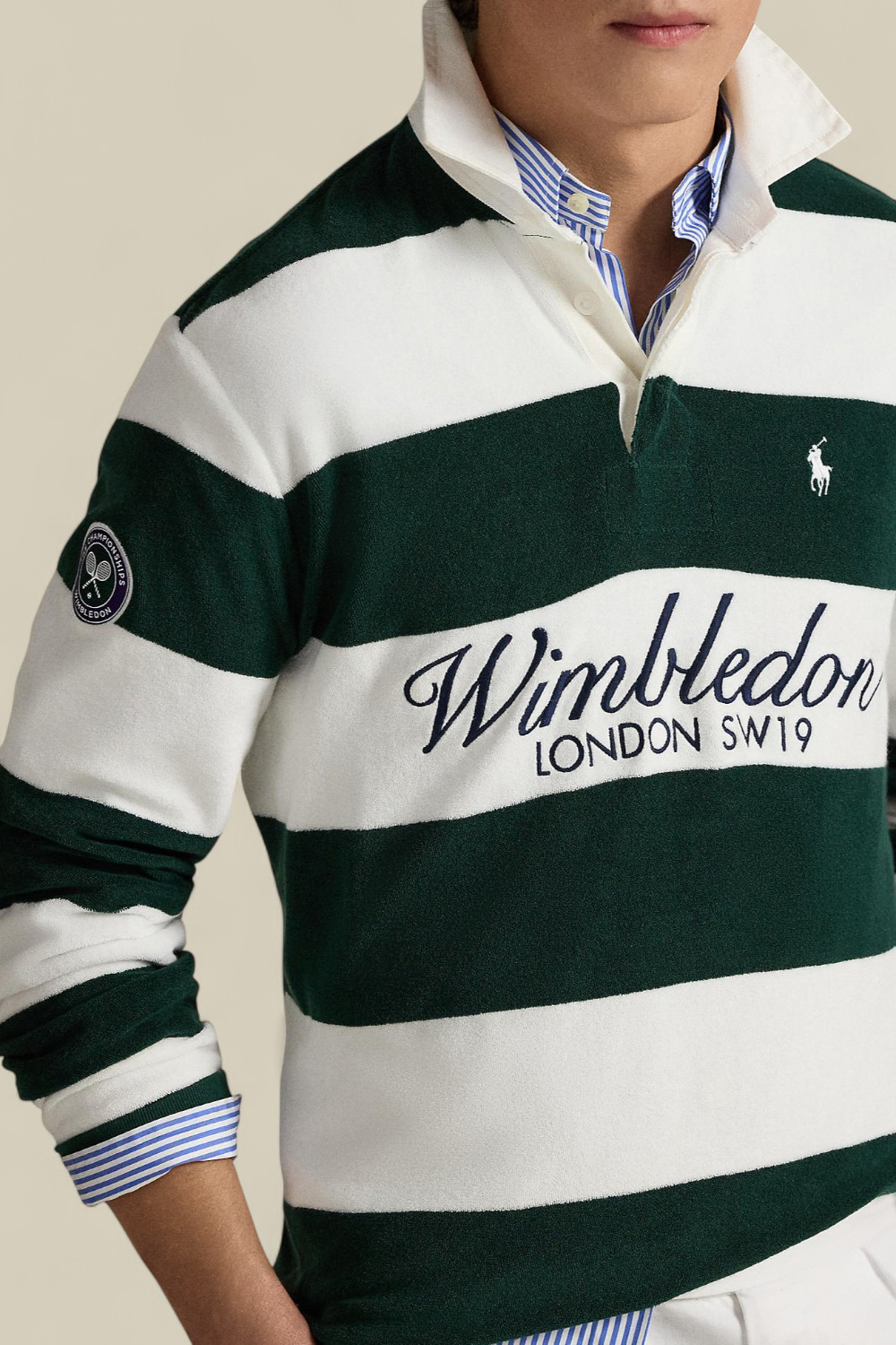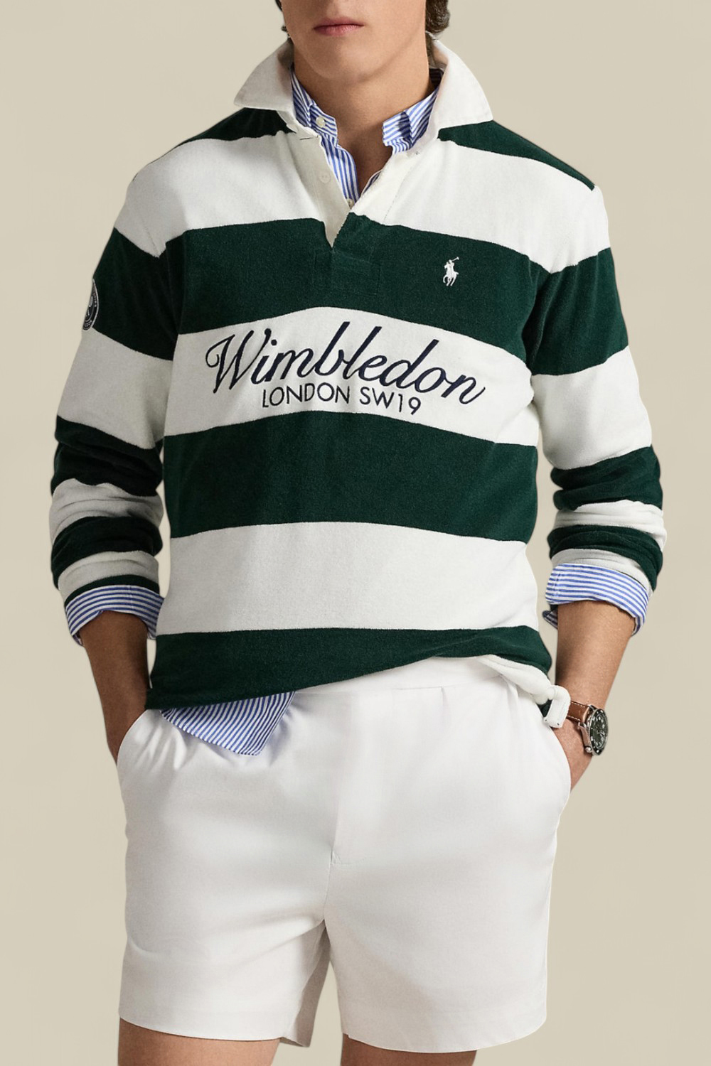 בית Polo Ralph Lauren הוא המלביש הרשמי של תחרות הטניס היוקרתית בווימבלדון מאז 2006, וזהו סווטישרט מתוך הקולקציה האחרונה. הוא עשוי כותנה עם בדוגמת פסים ירוק-לבן ורקמת שם המותג.