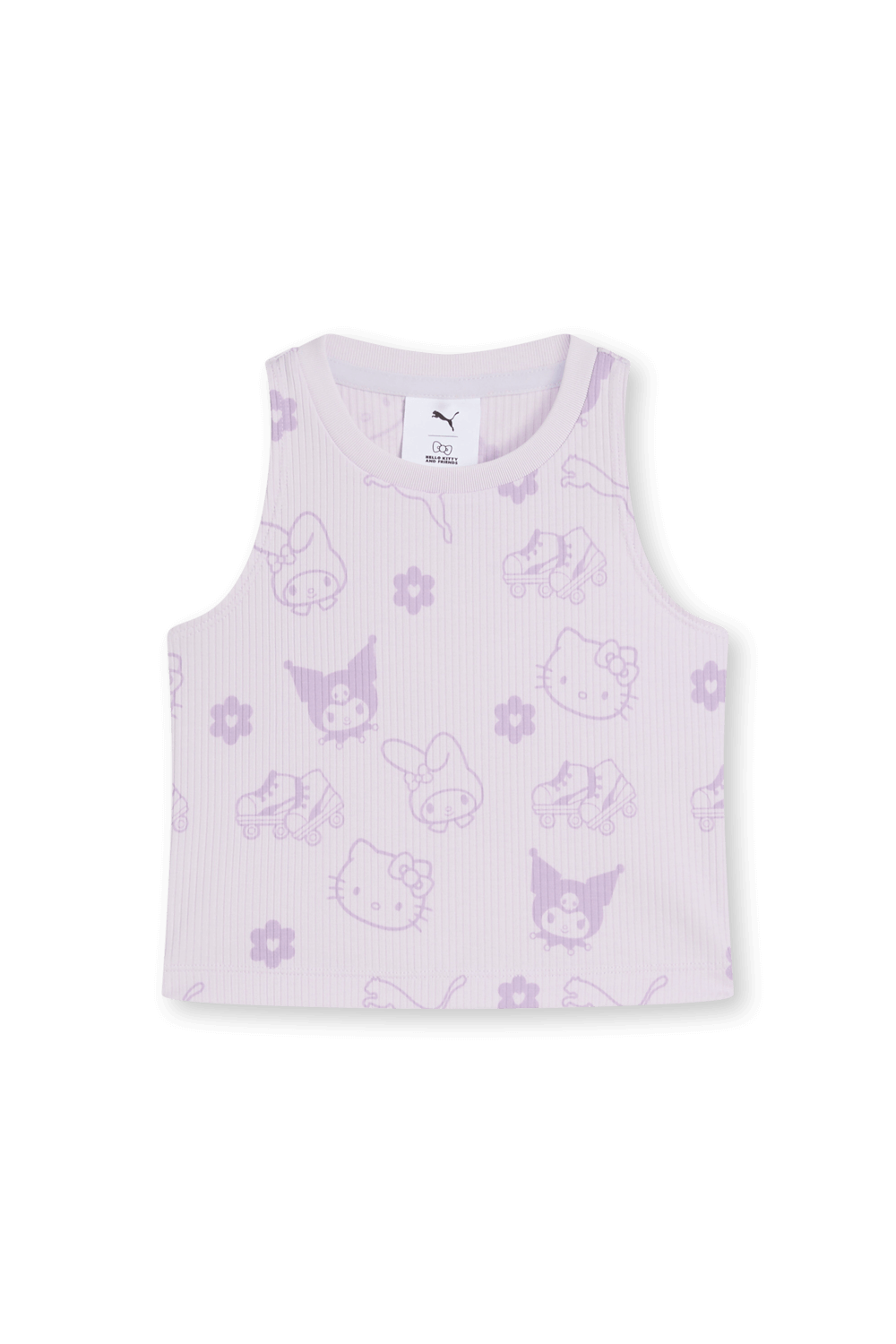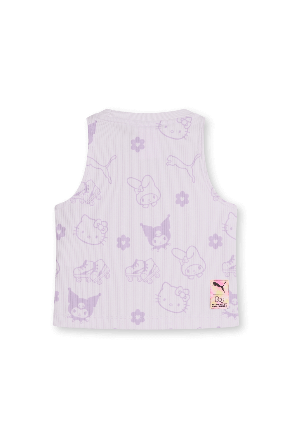 גופיית ריב מתוך שיתוף הפעולה Puma X Hello Kitty and Friends, המשלב בכיף בין סטריט וור לאסתטיקה הנצחית של קיטי וחברים. פריטי הקולקציה מעוצבים בהשראת סגנון ה-bubblegum pop של שנות ה-2000, המתאפיין בעיצובים צבעוניים ומנצנצים, הדפסים גרפיים וגימורים מבריקים. הגופייה עשויה כותנה ופוליאסטר ממוחזר בצבע סגול בשילוב הדפס קיטי וחברים.
