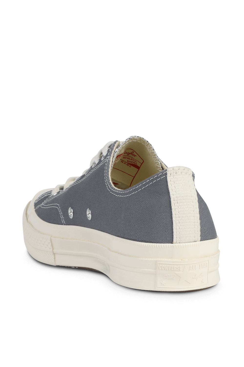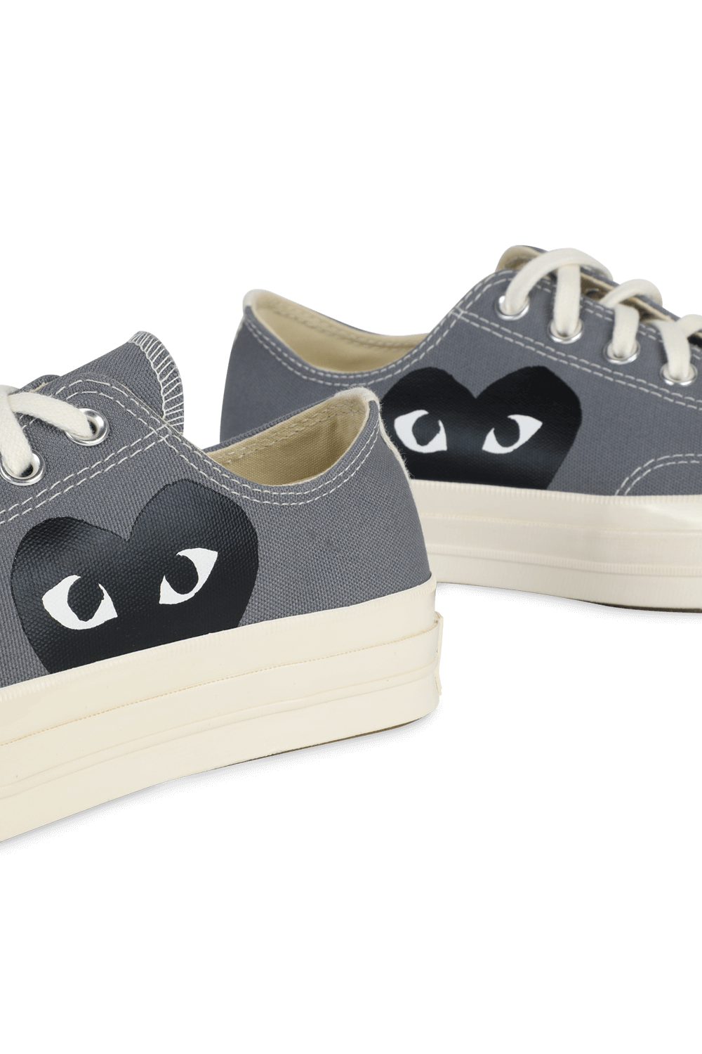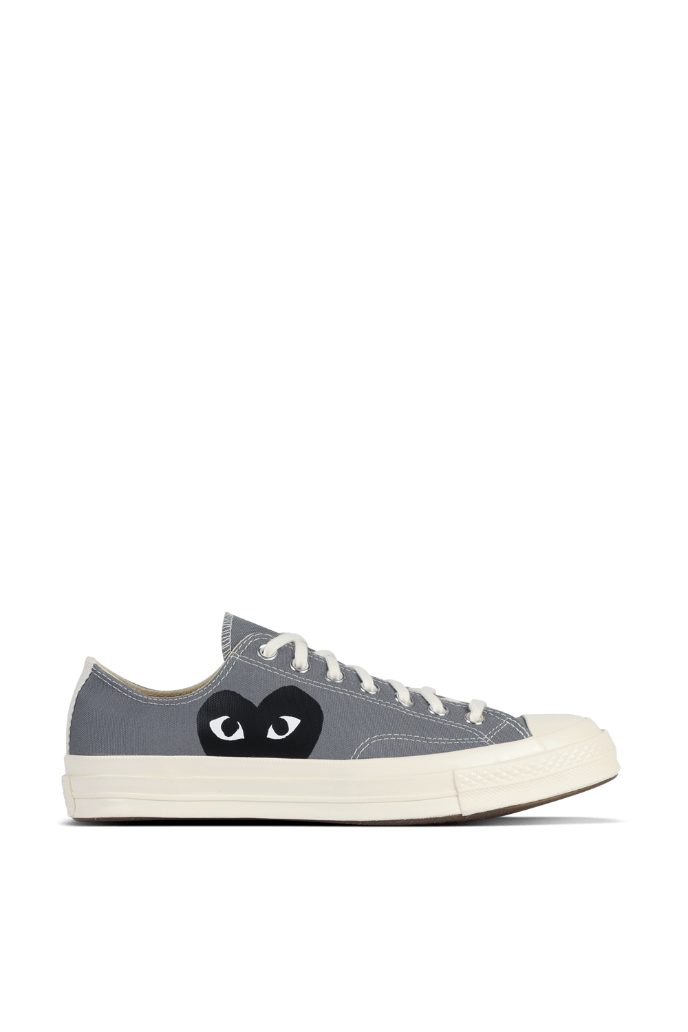 הנעל המיתולוגית מבית המותג האמריקאי Conerse זוכה לפרשנות מחודשת של PLAY - קו הקז`ואל היוקרתי והפופולרי של בית האופנה Comme de Garcon. זהו דגם קנבס קלאסי בגזרה נמוכה ובגוון אפור. בצד הנעל מתנוסס לב שחור עם שתי עיניים שהפך לסימן ההיכר של המותג היפני.