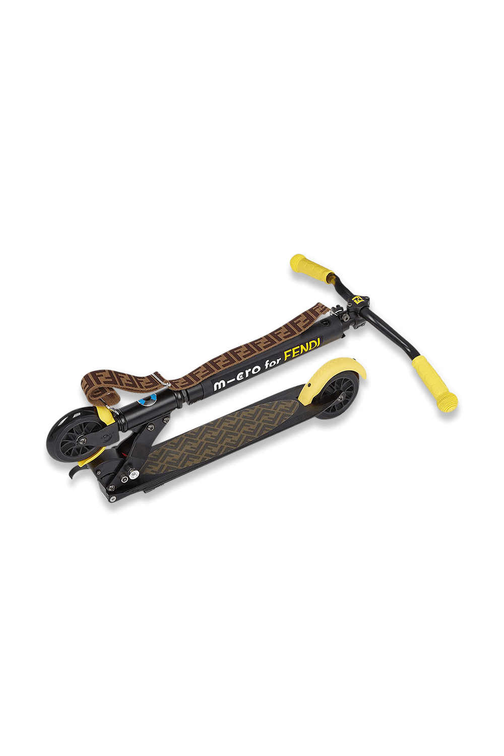 קורקינט דו-גלגלי Fendi X Micro, המעוצב כחלק משיתוף הפעולה בין בית האופנה היוקרתי Fendi למותג הקורקינטים השוויצרי האיכותי Micro. הקורקינט תוצרת איטליה עשוי אלומיניום בגוון שחור, מגיע עם כידון מתכוונן עד לגובה 102 ס"מ. הוא מאובזר בפנס קדמי - להדלקה קבועה או לסירוגין, ונושא את כל סימני ההיכר של המותג האיטלקי הנחשק - לוגו ה-FF מופיע על סיפון הרגליים, והכידון בגוון "צהוב פנדי". הוא ניתן לקיפול ומגיע עם רצועת לוגו מתכווננת מבד ג`קרד, שמאפשרת לשאת אותו על הכתף בנוחות.