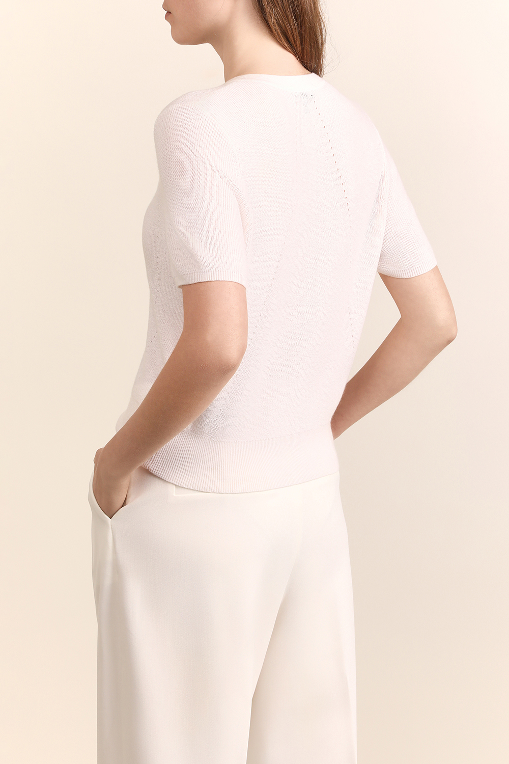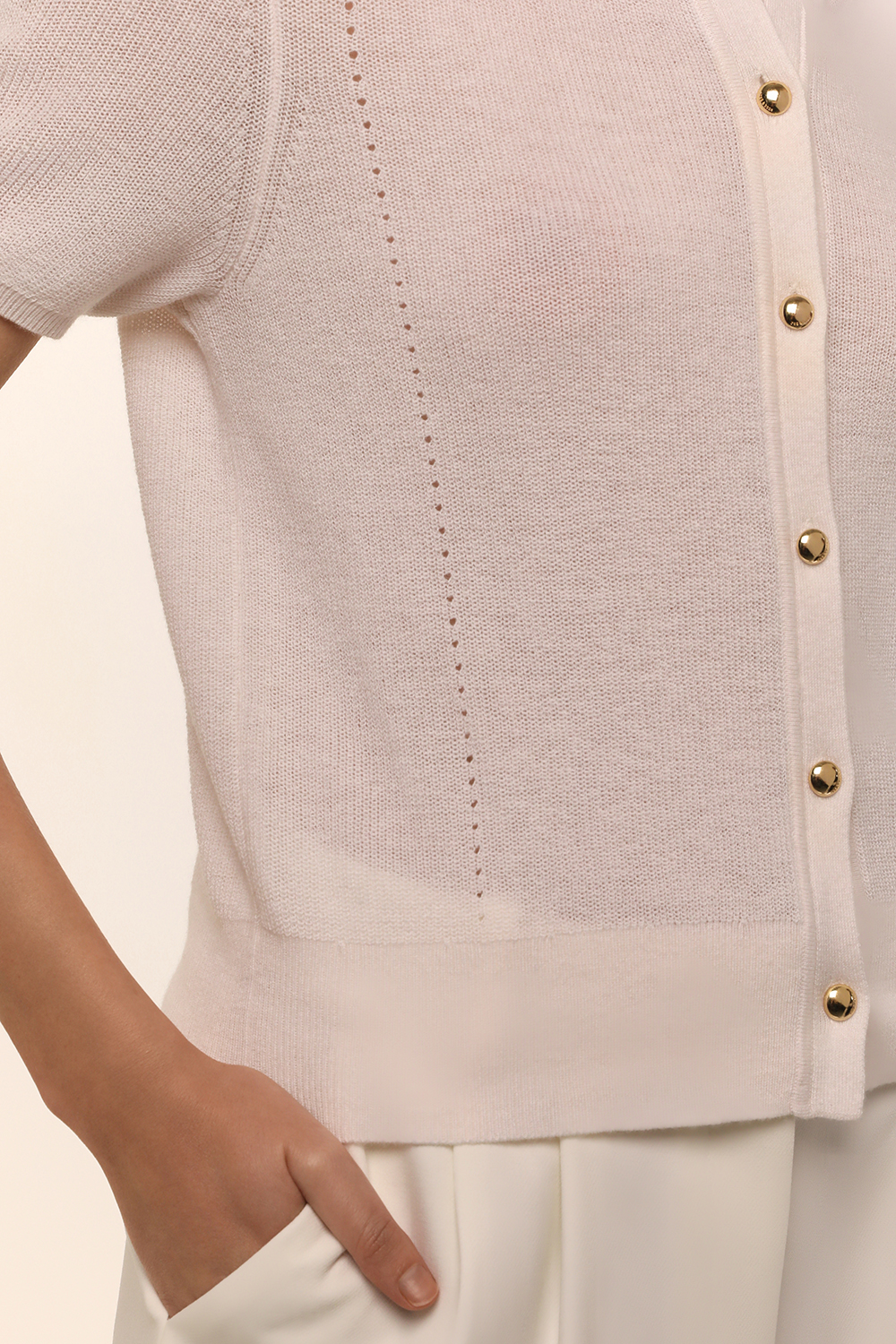 קרדיגן Dina בגזרת סלים מבית Rag&Bone, עשוי כותנה סרוגה מעט אלסטית בצבע לבן עם כפתורים זהובים ממוחזרים.