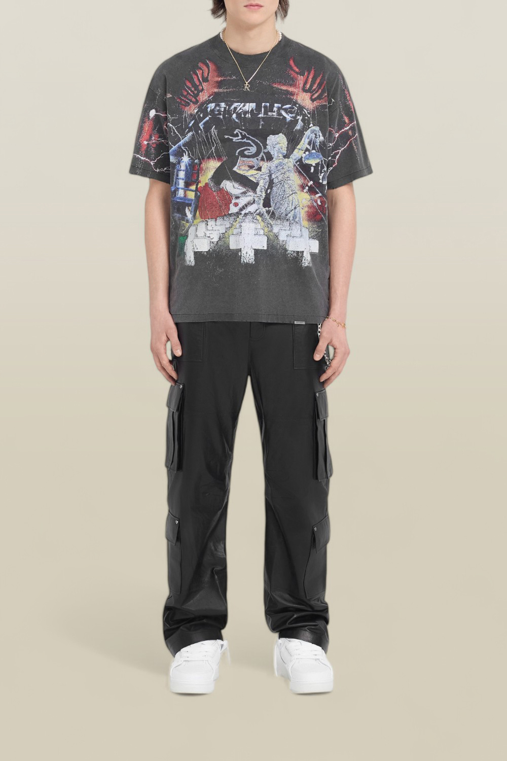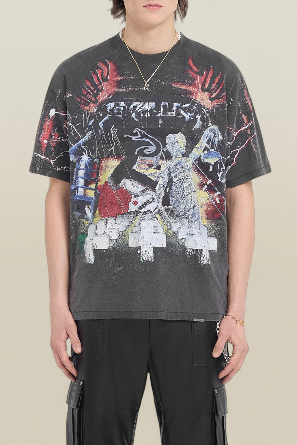 חולצת טי בגזרת אוברסייז מתוך קולקציית Represent X Metallica. היא עשויה כותנה אורגנית בצבע אפור, עם הדפס עטיפת אלבום הלהקה Master Of Puppets שיצא ב-1986.