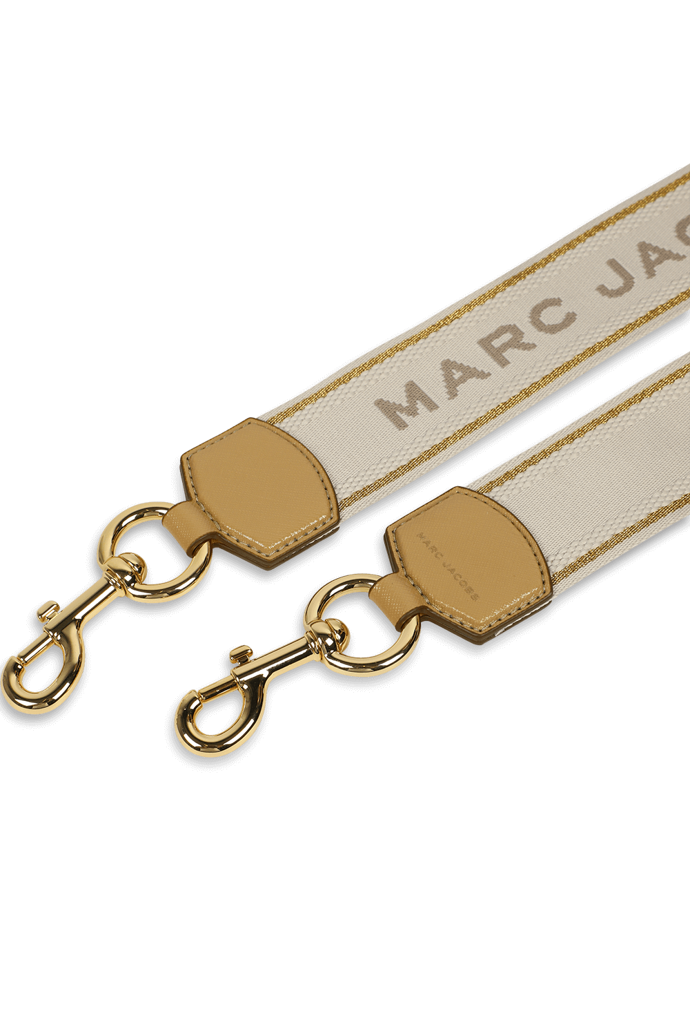 רצועת נשיאה לתיק בעיצוב רותח מבית האופנה האמריקאי מארק ג`ייקובס. רצועה עבה זו עשויה מטקסטיל איכותי בגוון בז` עם עיטורי זהב עדינים ושם המותג מתנוסס לאורכה בגוון אפור. רצועה זו מתכווננת ומתחברת לתיק באמצעות לולאות זהובות ושיקיות שחותמות את סגנונה. מדובר בפריט סופר סטייליש ופונקציונאלי שישדרג לך את התיק ברגע.