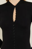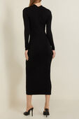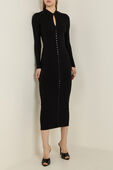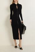 שמלת כפתורים בגזרה צמודה בעיצוב Alexander Wang, עשויה בד קופרו אלסטי בצבע שחור, בסגירת כפתורים לכל אורכה.