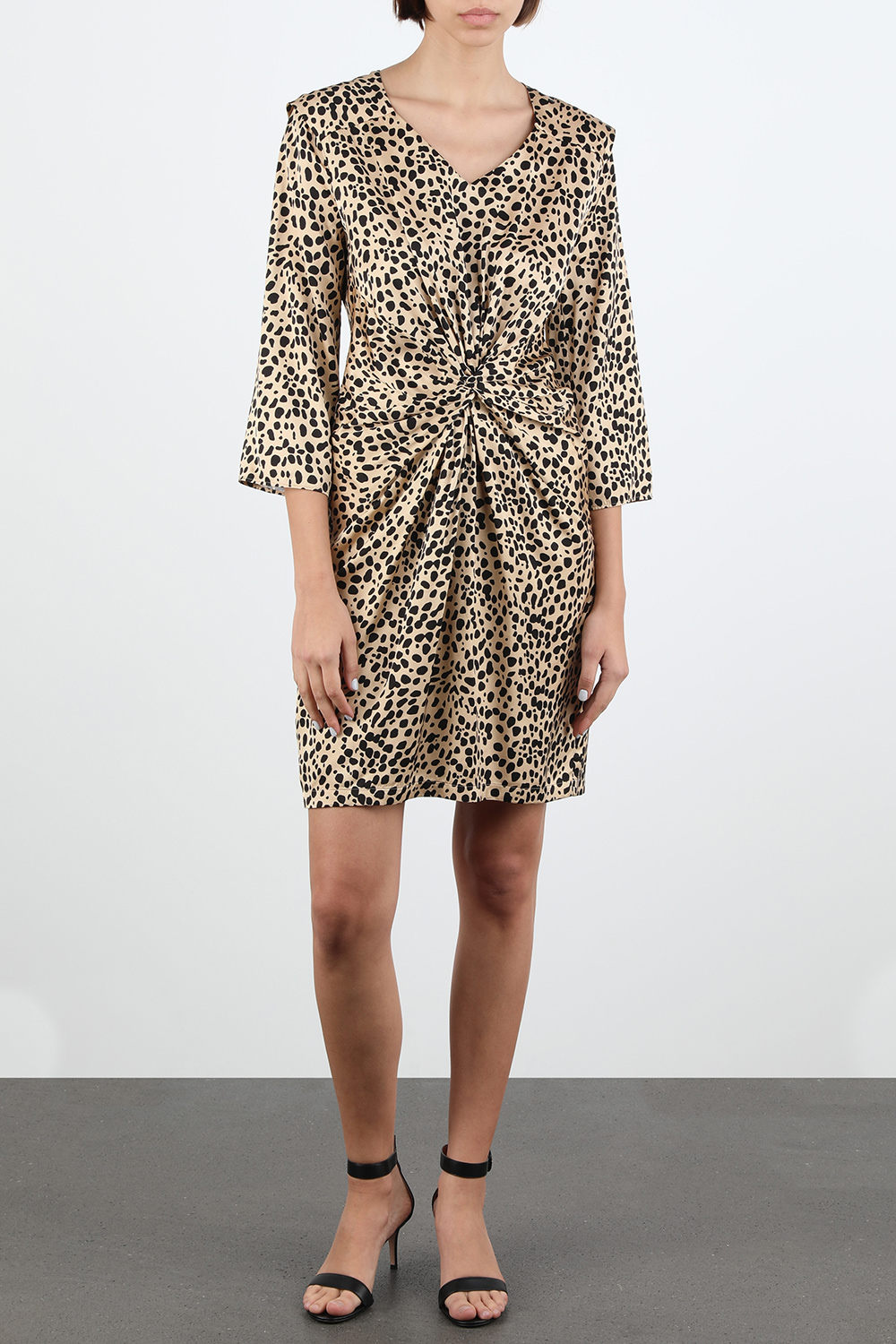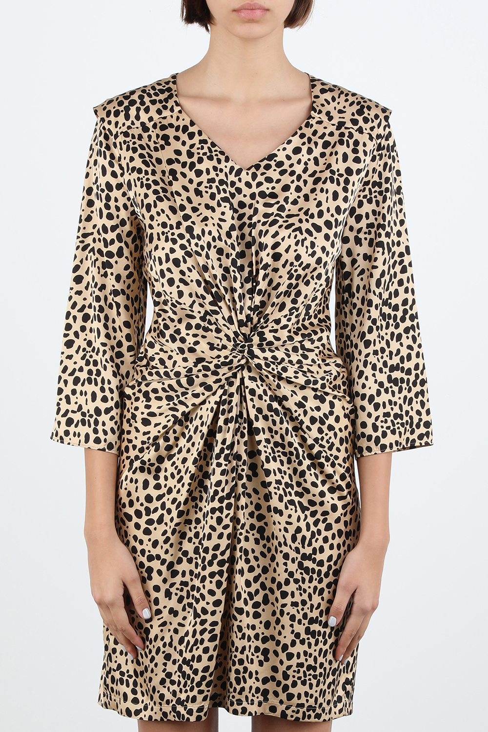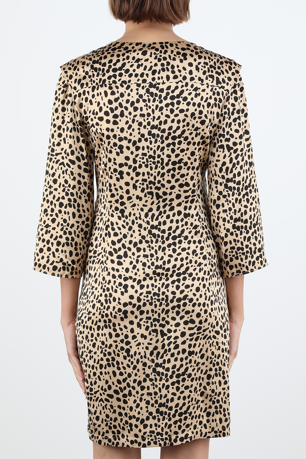 שמלת מידי הדפס מנוקד אבסטרקטי בגווני חום ושחור