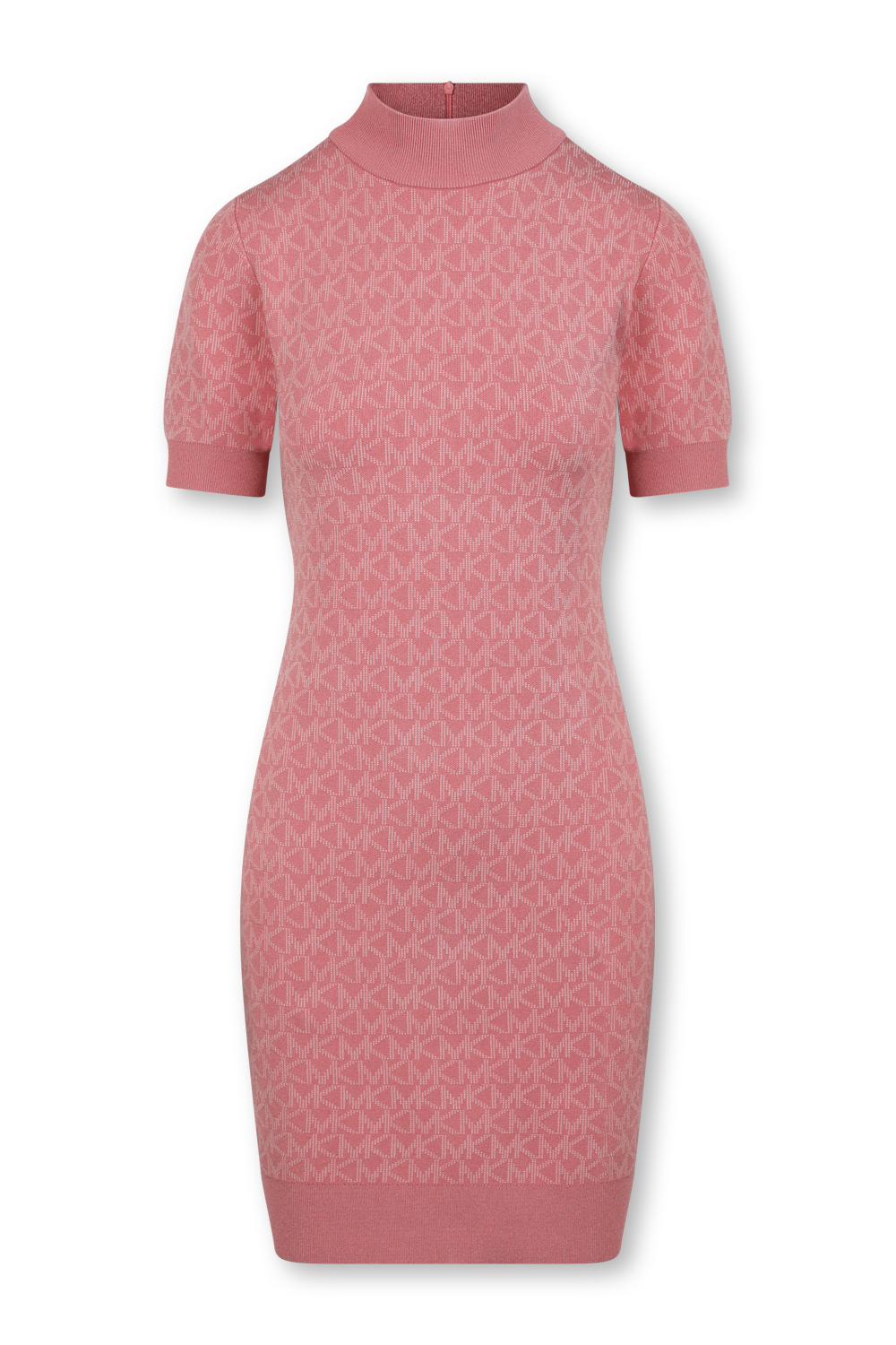 שמלת מידי מבית האופנה האמריקאי Michael Kors, העשויה מתערובת טקסטיל גמיש בגוון ורוד, ומציגה גזרה צמודה עם שרוולים קצרים וצווארון מעוגל בסריגת ריב. לוגו המותג מתנוסס בחזרתיות בכל צדדיה.