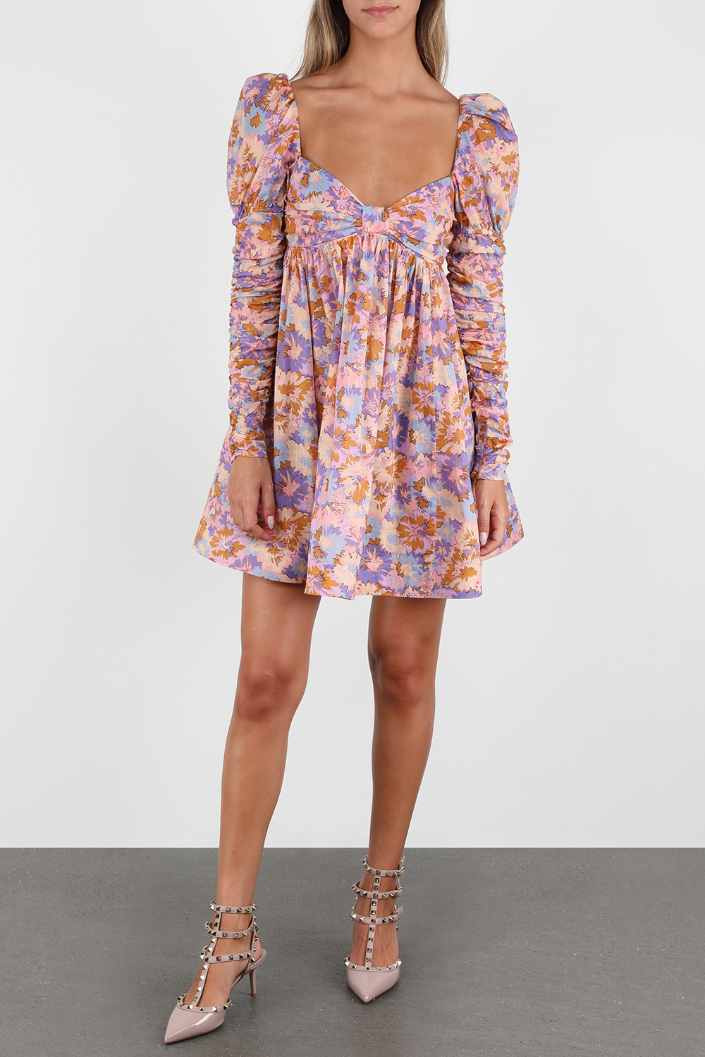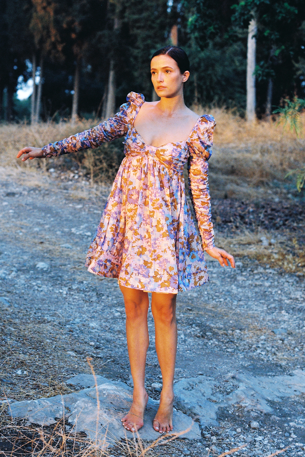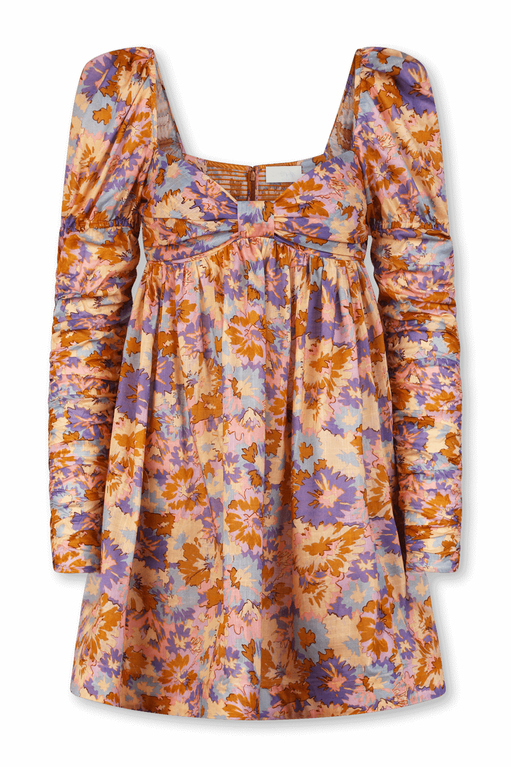 שמלת מידי בעיצוב בית האופנה האוסטרלי הרותח Zimmerman. זהו דגם Violet Twist העשוי 100% בד כותנה נעים וקליל עם הדפס פרחוני. לפריט גזרה מתרחבת בובתית עם שרוולים ארוכים פלוס מפתח צוואר לב. מדובר בשמלה שיקית ללוק סופר נשי ורומנטי.