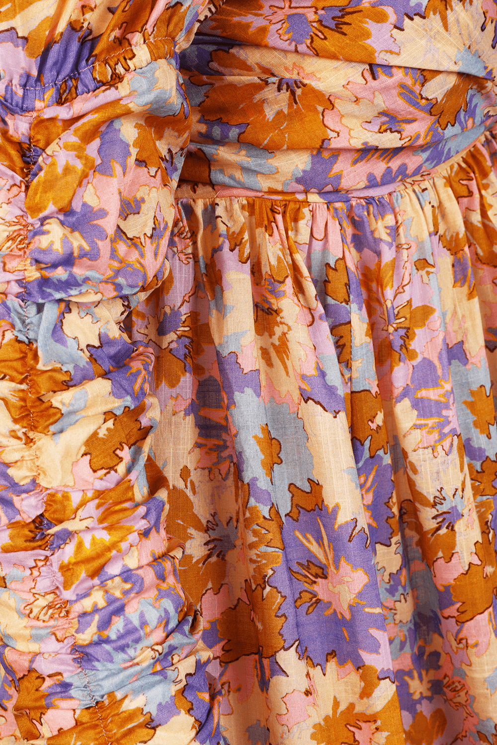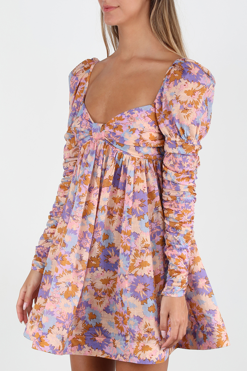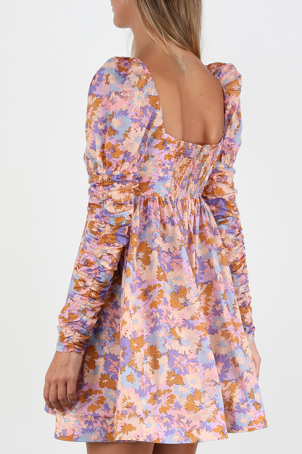 שמלת מידי בעיצוב בית האופנה האוסטרלי הרותח Zimmerman. זהו דגם Violet Twist העשוי 100% בד כותנה נעים וקליל עם הדפס פרחוני. לפריט גזרה מתרחבת בובתית עם שרוולים ארוכים פלוס מפתח צוואר לב. מדובר בשמלה שיקית ללוק סופר נשי ורומנטי.