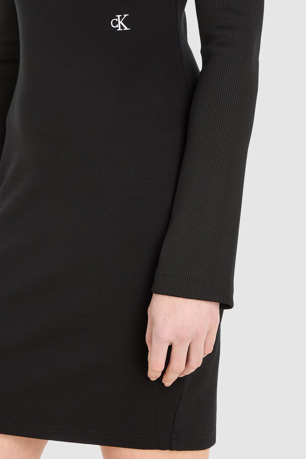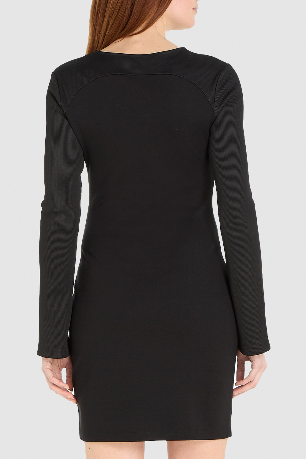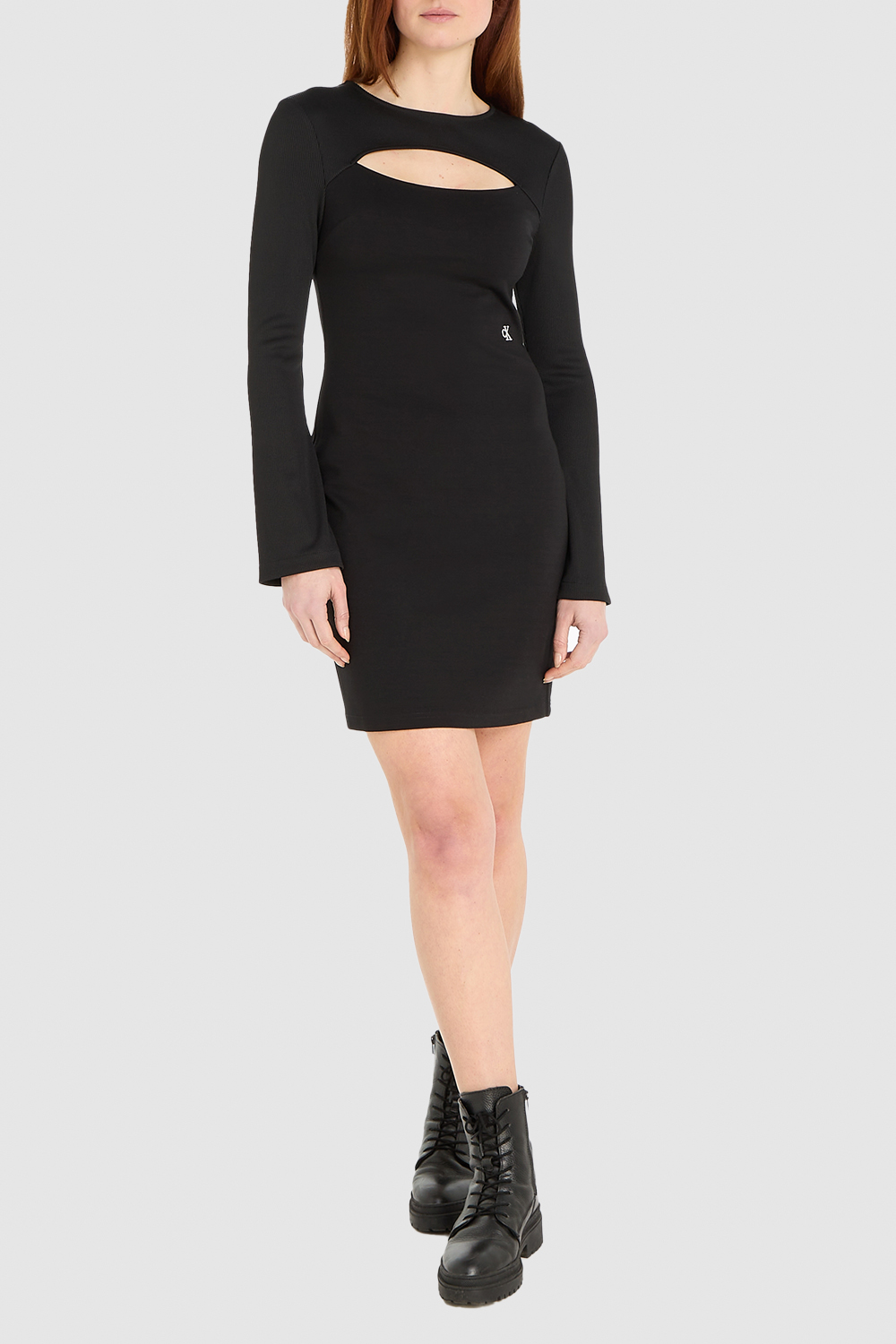 שמלת מיני מבית Calvin Klein, עשויה ויסקוזה וניילון בצבע שחור עם קאט אאוט.