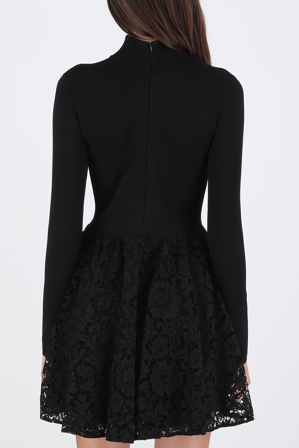 שמלת מיני שחורה עם שרוולים ארוכים ותחרה
