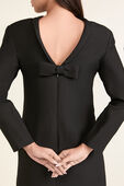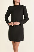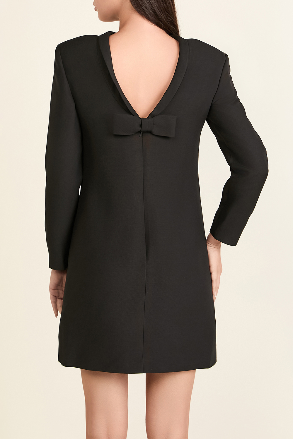 שמלה שחורה קטנה מבית Valentino - קלאסיקה שהיא מאסט בכל ארון. היא עשויה צמר בתולי בצבע שחור, עם ביטנת משי לכל אורכה ובשרוולים. היא נסגרת מאחור ברוכסן נסתר, שקצהו מוסתר בפפיון שחור אלגנטי.