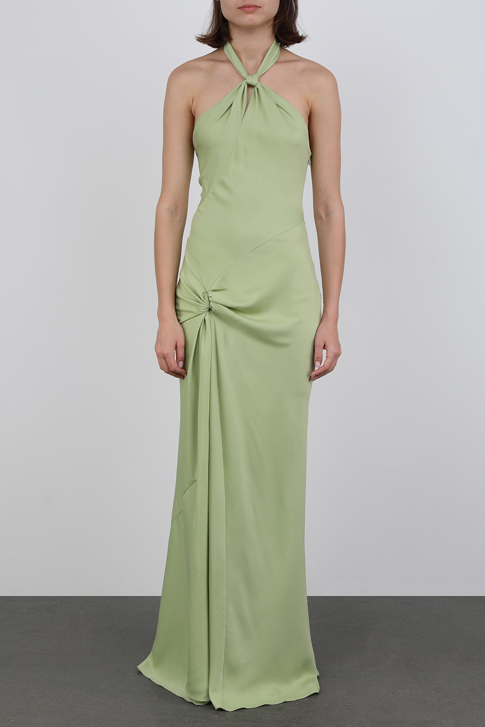 שמלת מקסי אלגנטית במיוחד מבית המעצבת רוני קובו. זהו דגם התפור מבד קליל ואיכותי במראה נשפך עדין ובגוון ירוק מנטה לכדי גזרת מקסי עם שסע צדדי עמוק וצווארון גבוה במראה קשירה. לשמלה גב פתוח המעניק טאץ` נשי ונחשק החותם את סגנונה הקלאסי של השמלה. סגנני עם נעלי עקב גבוהות ללוק ערב מנצח.