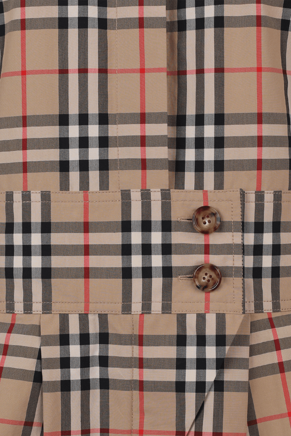 שמלת המיני של המותג הבריטי Burberry תעניק לך מראה נחשק ונטול מאמץ בשנייה הודות לגזרתה הייחודית המעוצבת בהשראת חולצת הכפתורים הגברית והנאספת מתחת למותן על ידי רצועת בד רחבה המעוטרת בשני כפתורים. השמלה עשויה 100% כותנה משובחת בהדפס משבצות הוינטאג` המזוהה עם המותג ולה קפלי בד בחזיתה. תעבוד מצוין לצד זוג סניקרס כמו גם עם מעיל ארוך ונעלי אוקספורד. שדרגי את מלתחתך עם שמלה נצחית זו.