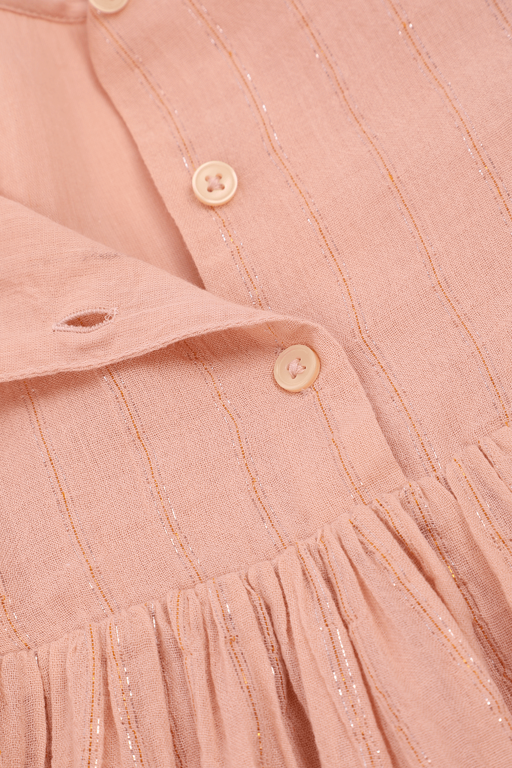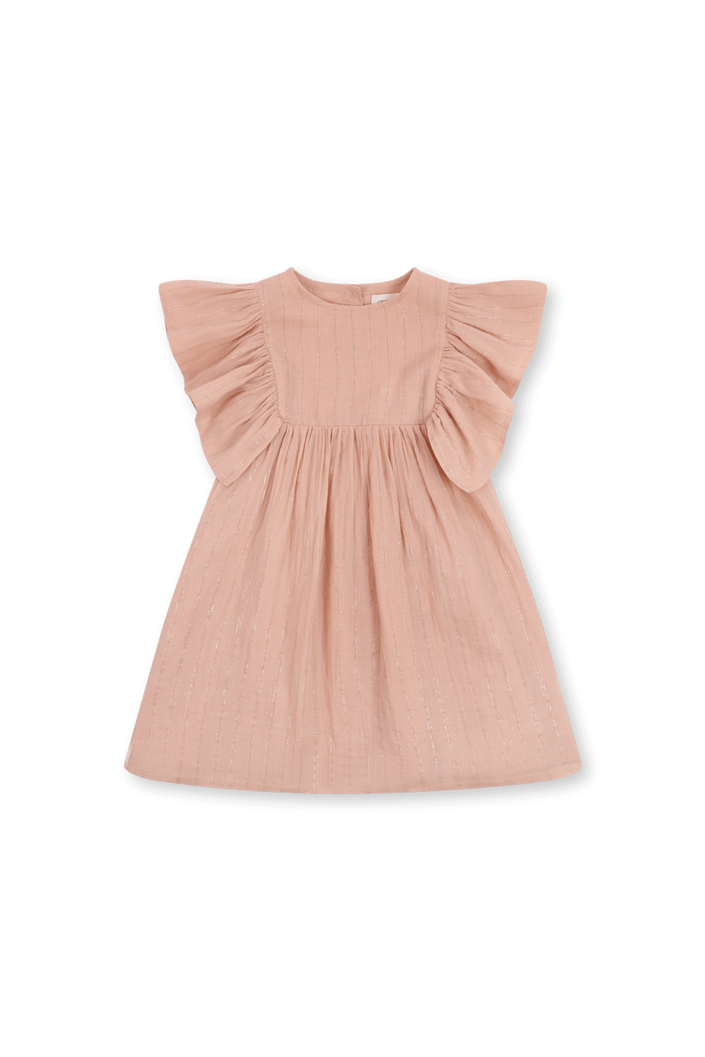 שמלה קצרה מבית האופנה Louis Louise, עשויה מכותנה בצבע לבן עם פסים מוזהבים ושרוולי מלמלה קצרים. לשמלה גזרה משוחררת ונינוחה.