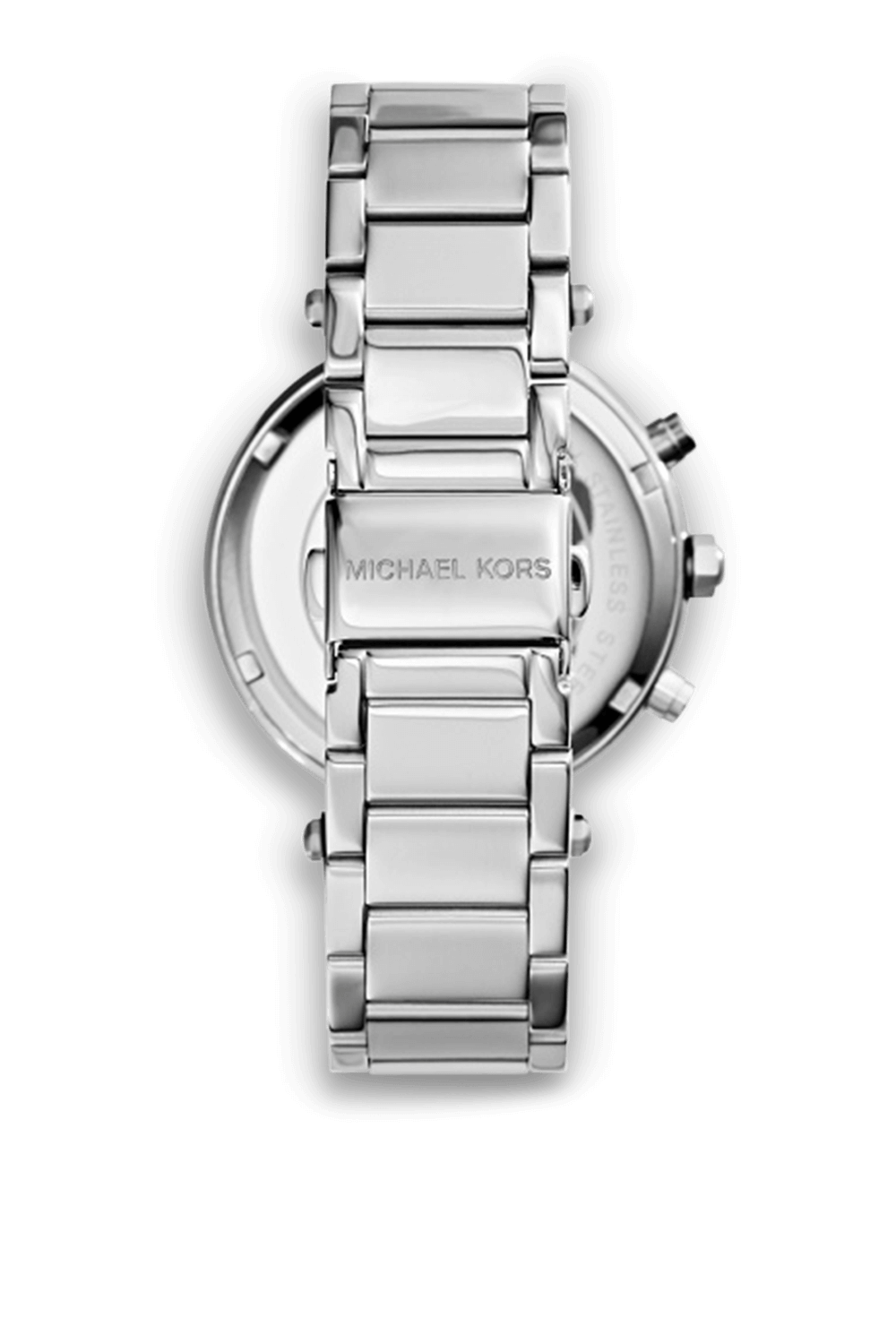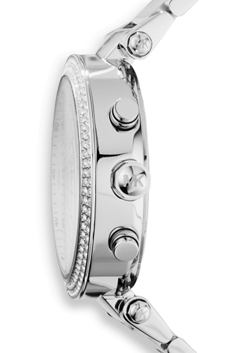 שעון יד מדגם Parker מבית Michael Kors בעיצוב אוברסייז, אלגנטי ומודרני בעיצוב מלוטש עם טאץ' זוהר. הוא עשוי עשוי פלדת אל-חלד מוברשת בעיטור Pave - שיבוץ אבני חן קטנות מאוד זו לצד זו, כך שהן יוצרות מראה רציף ונוצץ, עם צמיד שרשרת מלוטש ואלגנטי. השעון במנגון קוורץ. עמיד במים עד 5 ATM. מגיע בקופסה מהודרת מבית המותג.