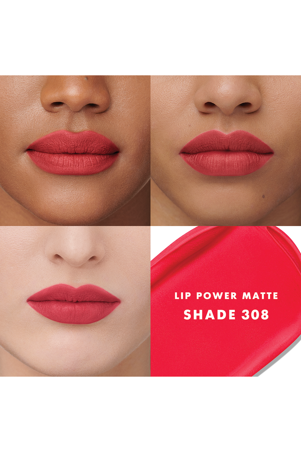 שפתון עמיד 308 LIP POWER מבית Armani Beauty, מועשר בלחות במרקם קליל, לגוון שפתיים אחיד בגימור מאט. 3.1 גרם