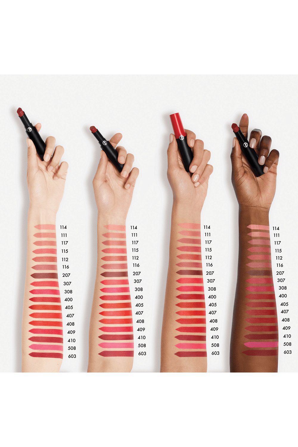 שפתון עמיד 407 LIP POWER מבית Armani Beauty, מועשר בלחות במרקם קליל, לגוון שפתיים אחיד בגימור מאט. 3.1 גרם