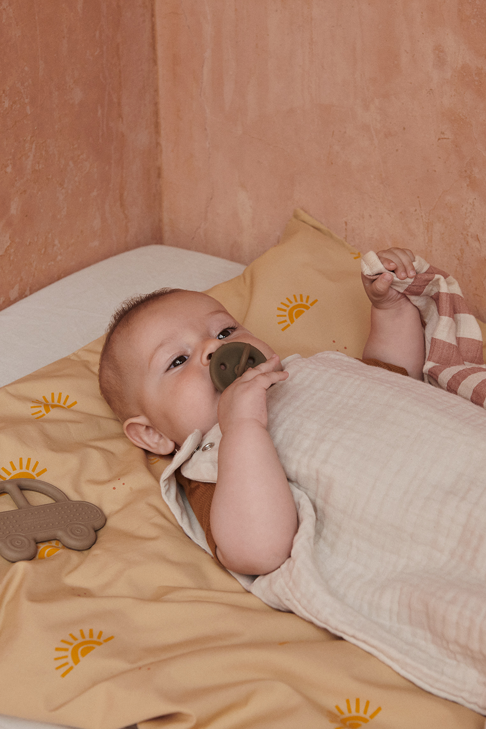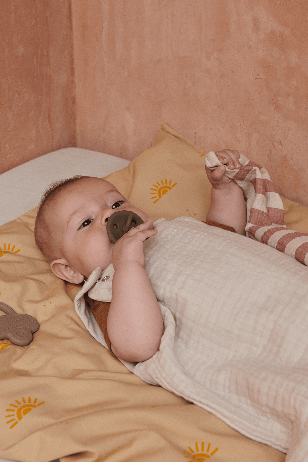 שק שינה מבית Liewood, עשוי כותנה אורגנית רכה ונעימה בגוון ניוד עם סגירת רוכסן צדדי לכל אורכו ושני כפתורי תיק תק. השק שינה נועד לבטחון הילד, לשינה טובה יותר ומעניקה שמירה על חום התינוק בעת זמן ההנקה.