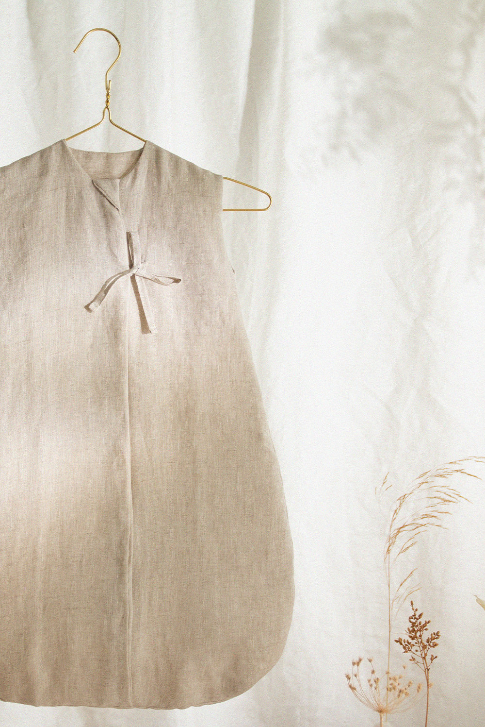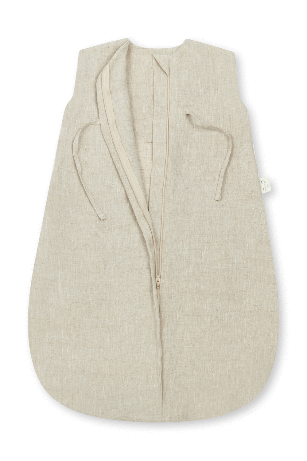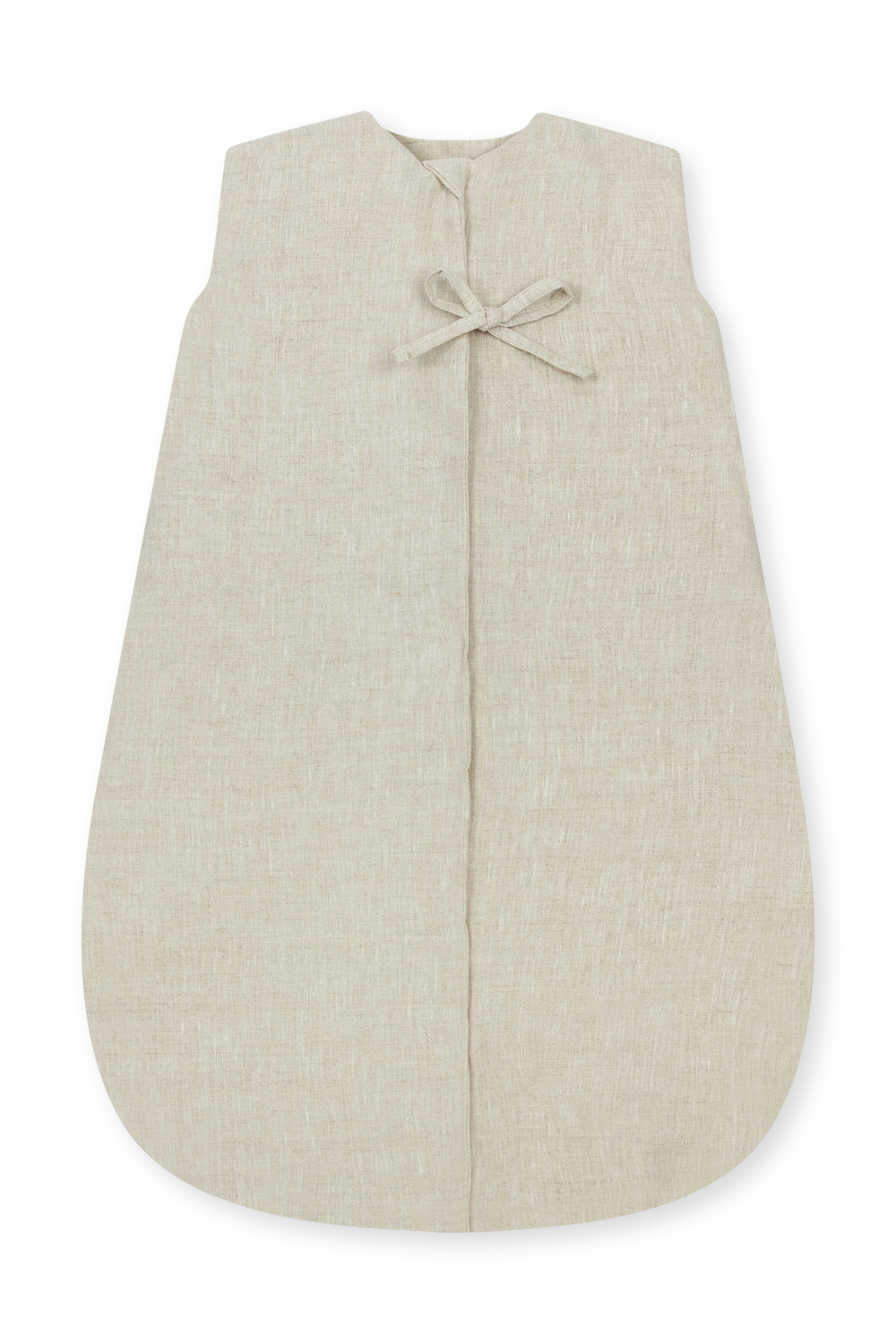 שק שינה לתינוקות בגודל סמול מבית Nobodinoz, עשוי פשתן צרפתי בצבע בז', עם רוכסן קדמי נסתר המאפשר פתיחה קלה ונוחה בשילוב קשירת פפיון. לשק השינה גזרת גופייה המתלבשת על הכתפיים ומעניקה הגנה מקסימלית מפני תזוזות, ובנוסף שומר על חום התינוק בזמן ההנקה. ניתן לכבס במכונת כביסה.