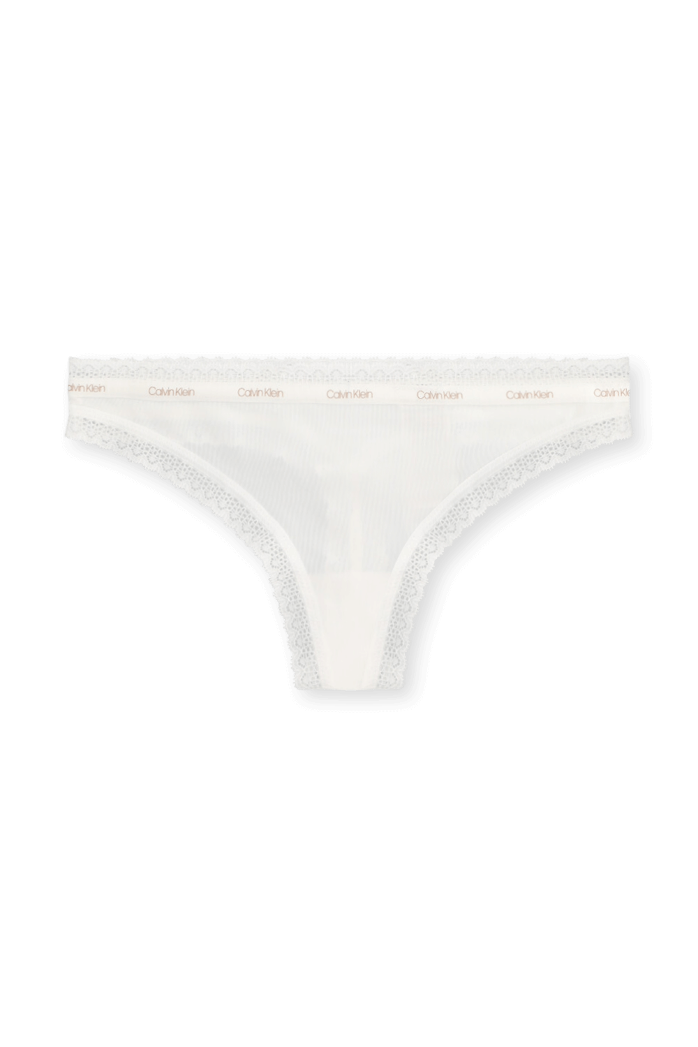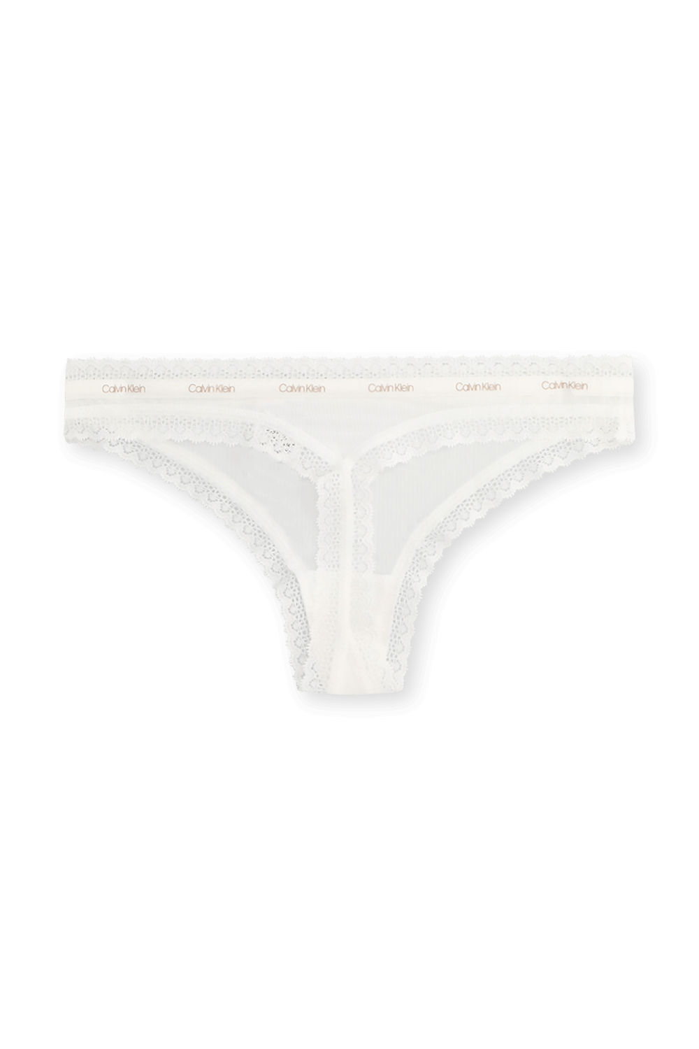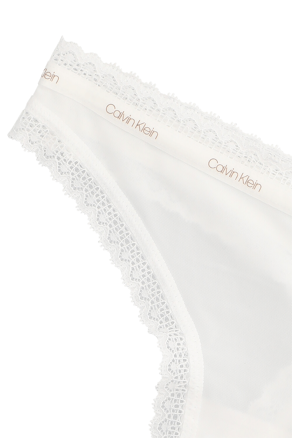 תחתוני חוטיני מבית Calvin Klein, עשויים תערובת פוליאמיד ואלסטן בצבע לבן עם מסגרת תחרה בשילוב הדפס לוגו המותג.