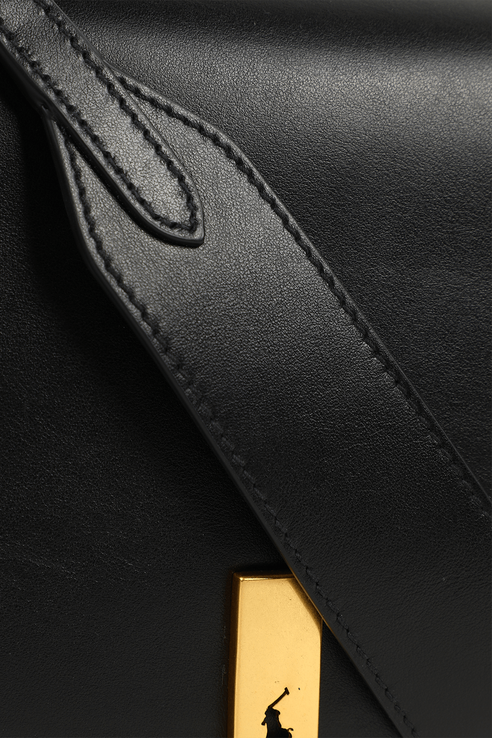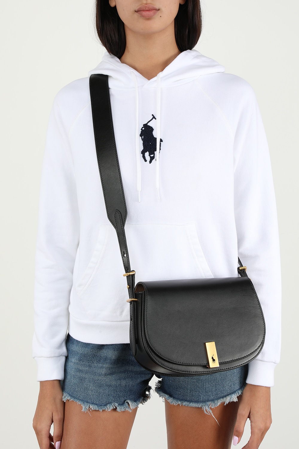 תיק אוכף מבית האופנה האמריקאי Polo Ralph Lauren. תיק העשוי מ-100% עור משובח בגוון שחור ובגימור חלק. התיק מעוצב בהשראת תחושת הרפתקאות ורומנטיקה, ומשרה אווירה אלגנטית. לוח פליז המציג את הצללית של הפוני המזוהה עם המותג מעניק סטייל וינטג` לפריט, לצד רצועת נשיאה מתכווננת החותמת את סגנונו.