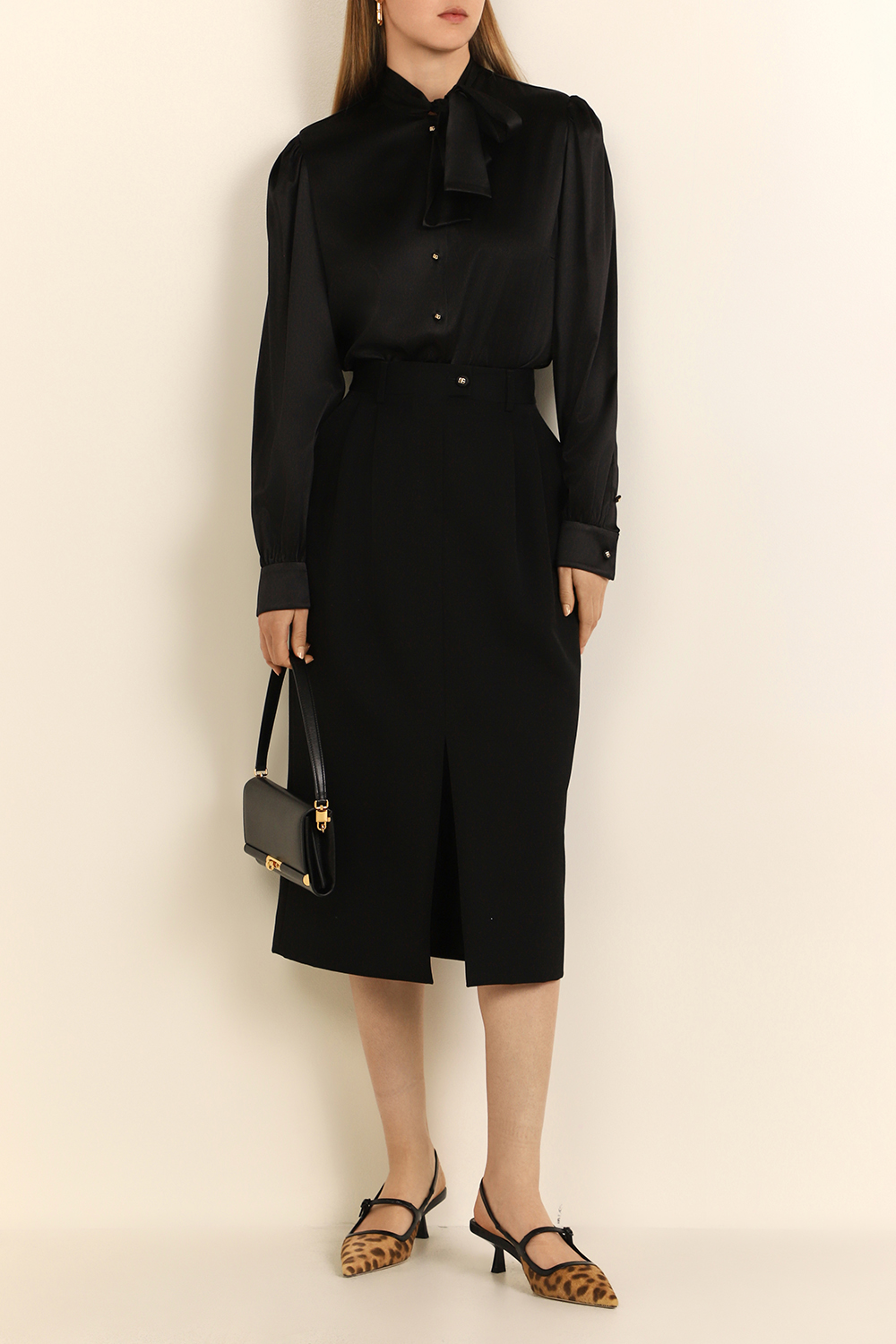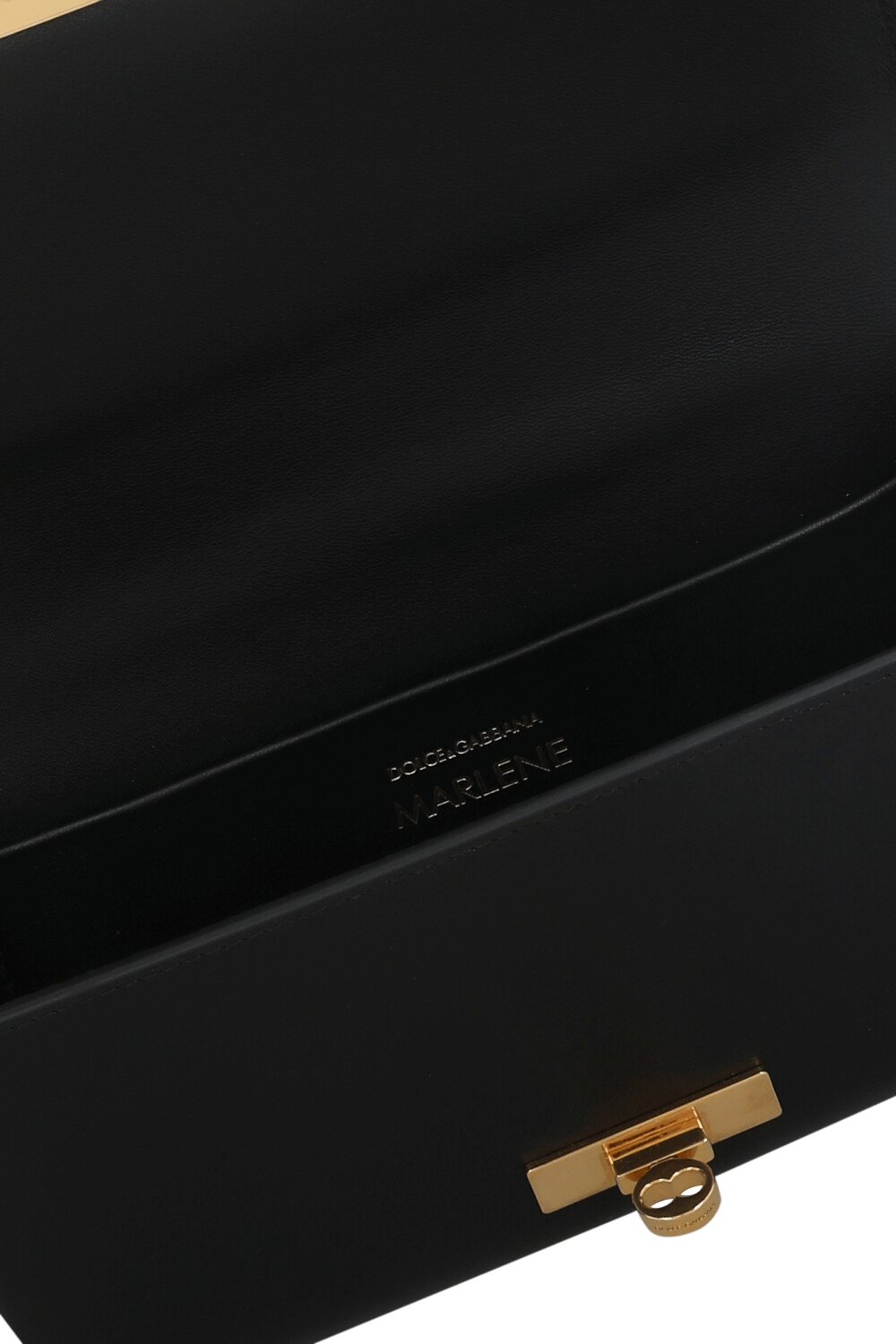תיק ארנק Marlene מבית Dolce&Gabbana, עשוי עור בצבע שחור עם ביטנת עור ושני כיסים פנימיים. התיק נסגר בסוגר סיבובי ויש לו רצועת נשיאה הניתנת להסרה כך שאפשר לשאת אותו התיק כקלאץ'.