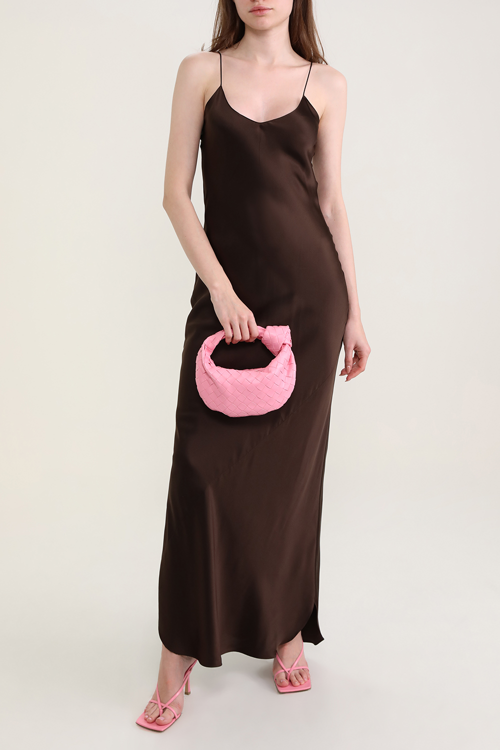 תיק נשיאה ורוד מבית האופנה היוקרתי והמדובר Bottega Veneta. זהו דגם בגודל מיני העשוי מ-100% עור משובח ורך במיוחד בטקסטורת שתי וערב לכדי צללית חצי מעוגלת עם ידית נשיאה קשורה. לתיק תא מרכזי עם מרווח שיכיל בקלות את כל חפצייך החיוניים והוא נרכס ברוכסן מטאלי.