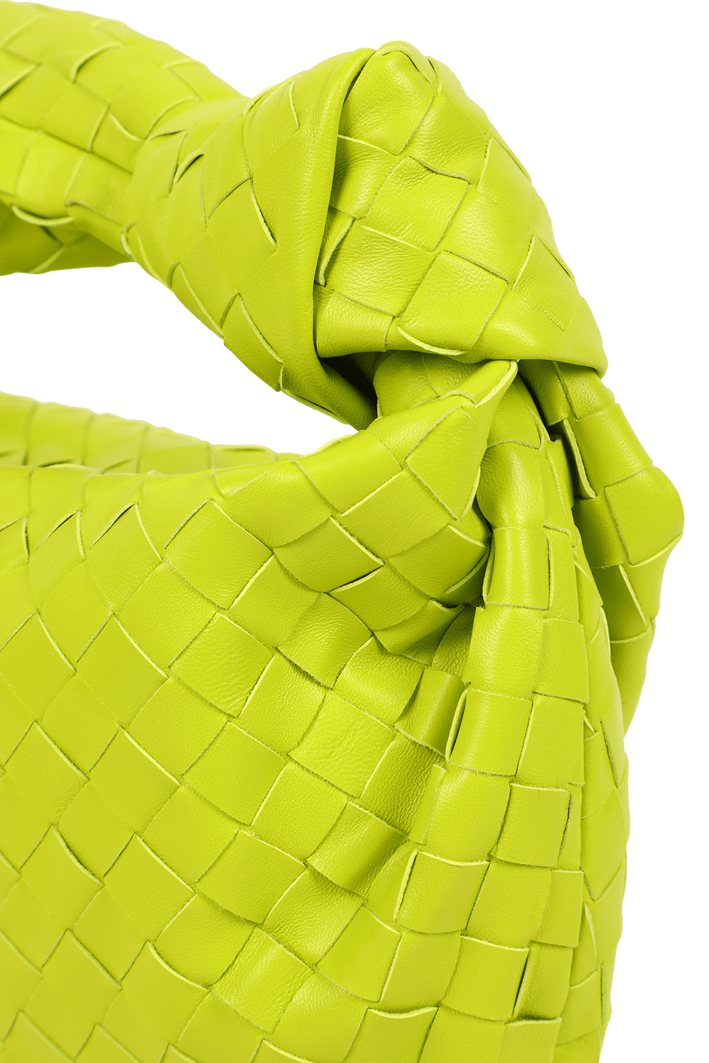 תיק נשיאה בגוון ירוק מבית האופנה היוקרתי והמדובר בוטגה ונטה. זהו דגם בעיצוב עדכני העשוי מ-100% עור משובח ורך במיוחד בטקסטורת שתי וערב לכדי צללית חצי מעוגלת עם ידית נשיאה המאובזרת בקשר צידי המהווה דיטייל בסגנון מתוחכם ומינימליסטי. לתיק חלל מרכזי עם מרווח ראוי שיכיל בקלות את כל חפצייך החיוניים והוא נרכס ברוכסן מטאלי.