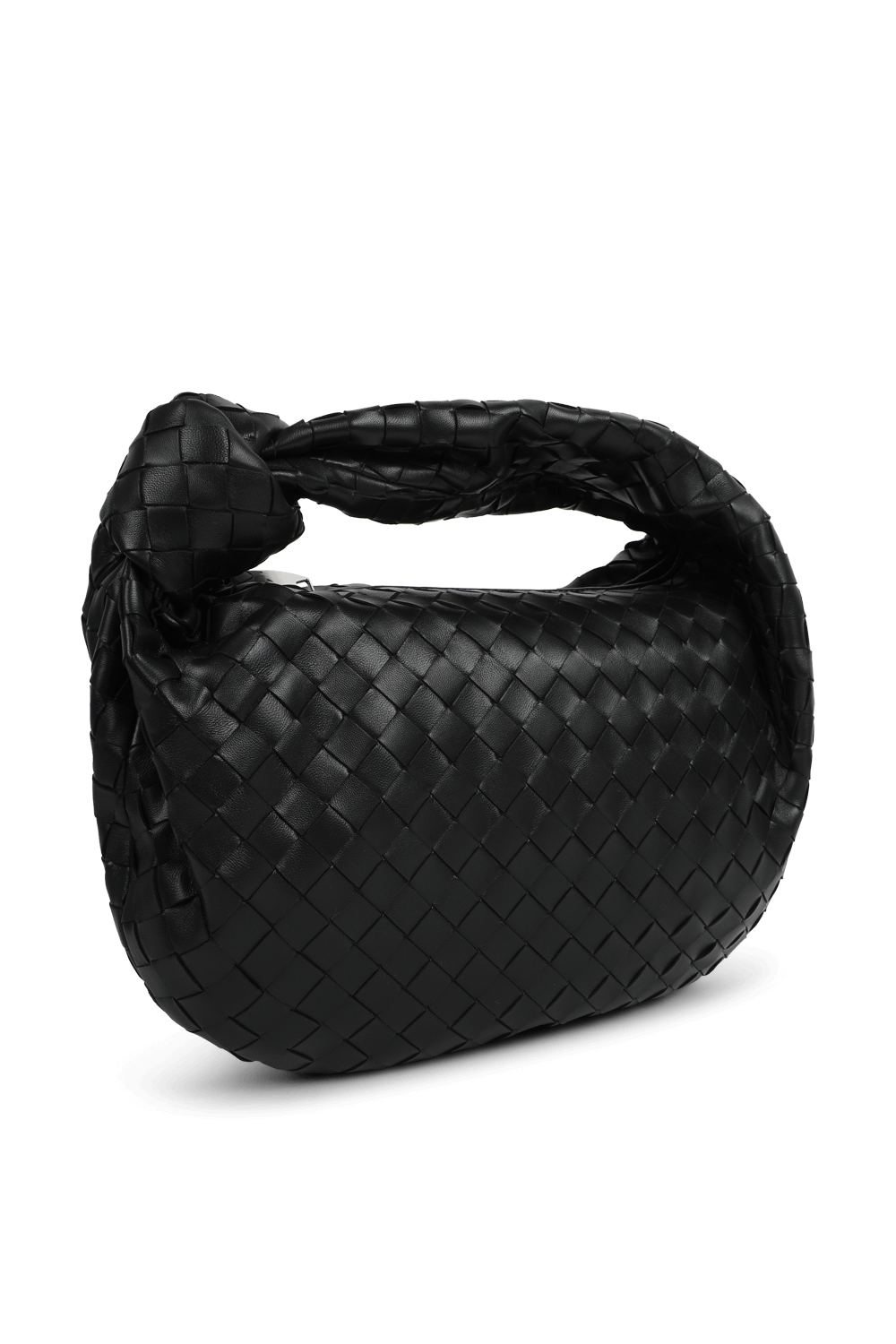תיק נשיאה בגוון שחור מבית האופנה היוקרתי והמדובר Bottega Veneta. זהו דגם ג`ודי העשוי מ-100% עור משובח ורך במיוחד בטקסטורת שתי וערב לכדי צללית חצי מעוגלת עם ידית נשיאה קשורה. לתיק תא מרכזי עם מרווח ראוי שיכיל בקלות את כל חפצייך החיוניים והוא נרכס ברוכסן מטאלי.