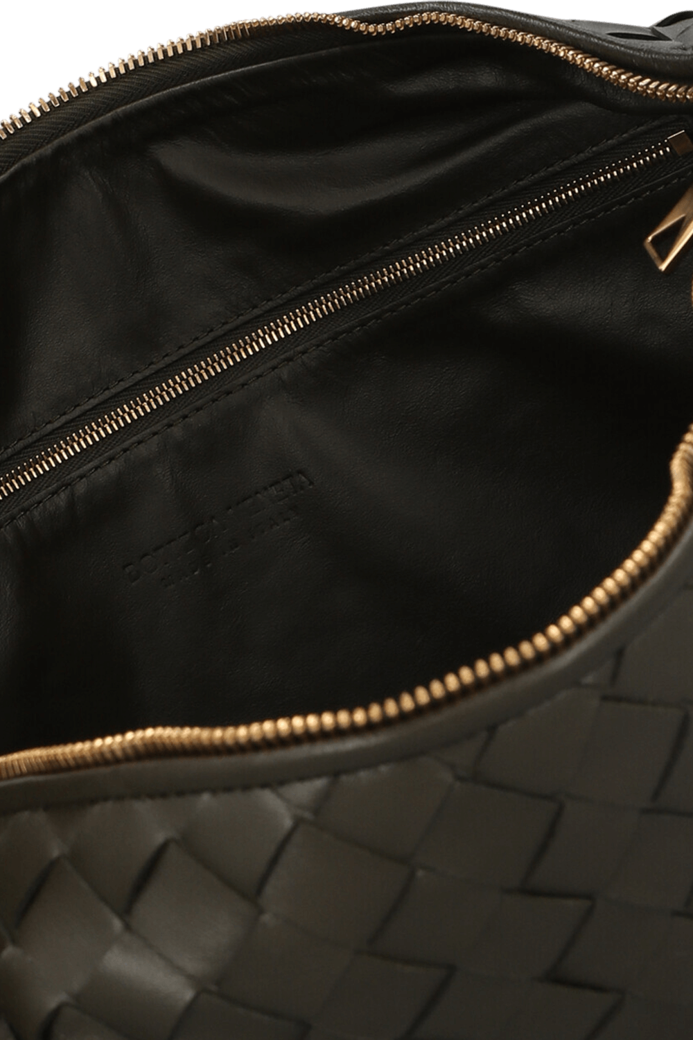 תיק Judie האייקוני בגודל סמול מבית המותג היוקרתי Bottega Veneta. הוא עשוי עור בטקסטורת שתי וערב, עם אלמנט קשירה בידית הנשיאה המוכרת של המותג בסגנון מתוחכם ומינימליסטי. התיק בצבע חאקי ולו תא מרכזי מרווח הנסגר ברוכסן, עם ביטנת עור חלקה וכיס פנימי בסגירת רוכסן גם כן.