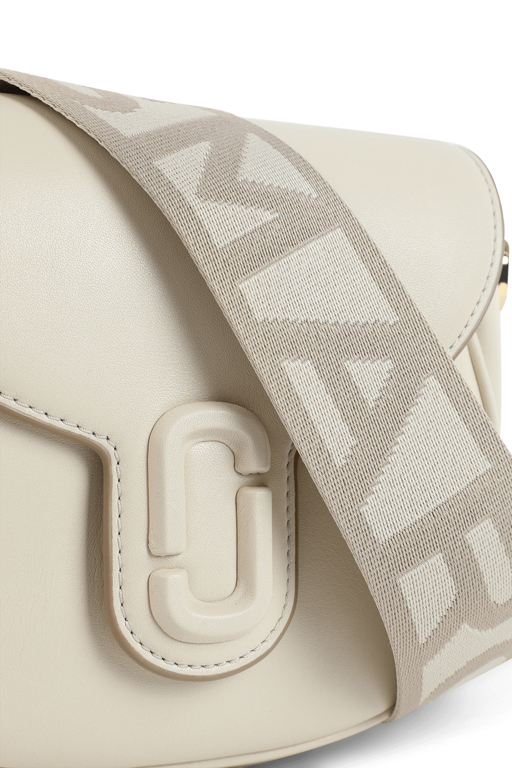 "תיק צד מדגם J בגודל סמול מבית האופנה המוביל Marc Jacobs. דגם העשוי מ- 100% עור בצבע לבן בצורה מתקפלת עם תא מרווח וכיס, לצד רצועת קרוס ארוכה וממותגת."