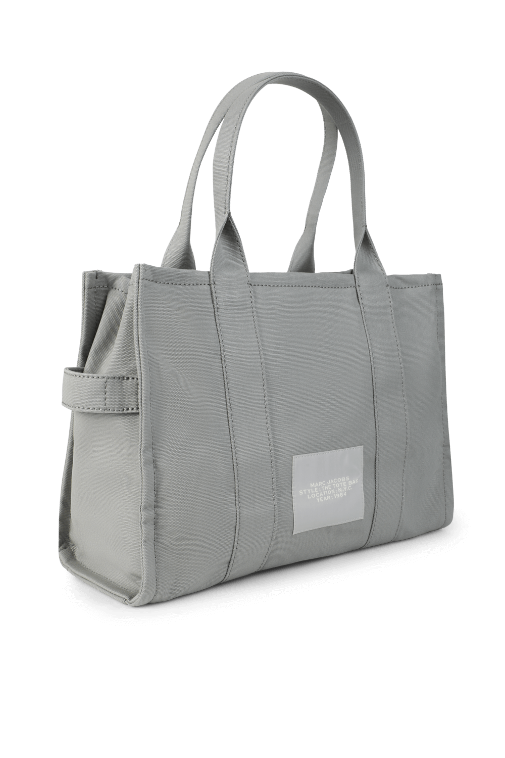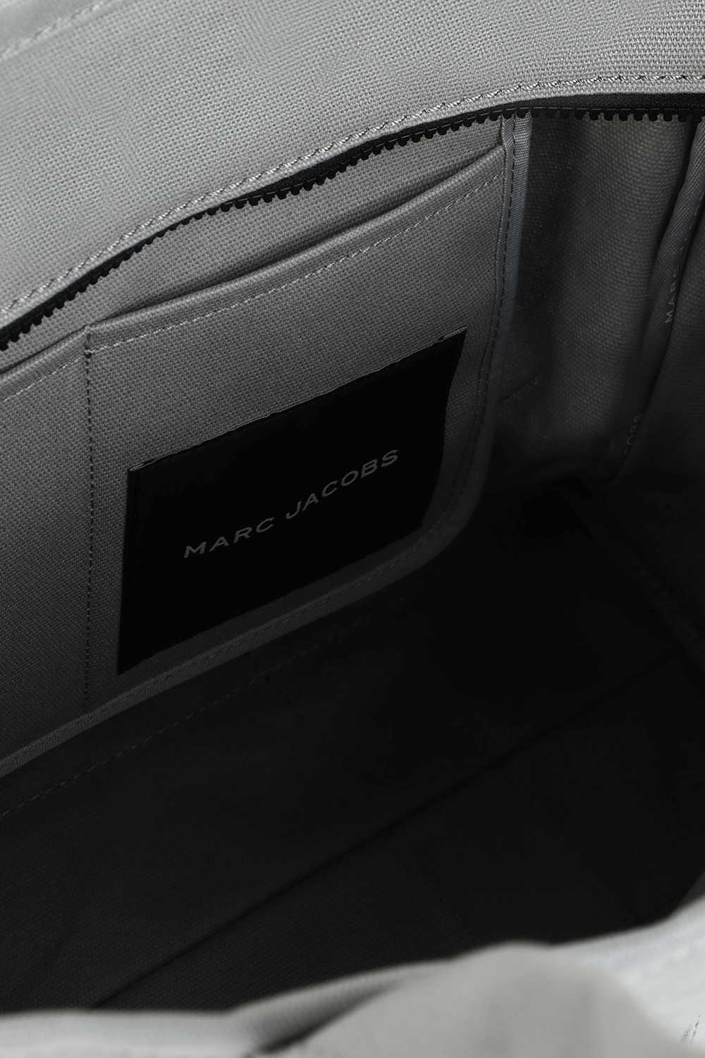 תיק Tote בגודל לארג' מבית Marc Jacobs, עשוי כותנה בצבע אפור. לתיק תא מרכזי ובו שלושה כיסים פנימיים, אחד מהם בסגירת רוכסן. לתיק שתי ידיות נשיאה ורצועת קרוסבודי מתכווננת הניתנת להסרה.