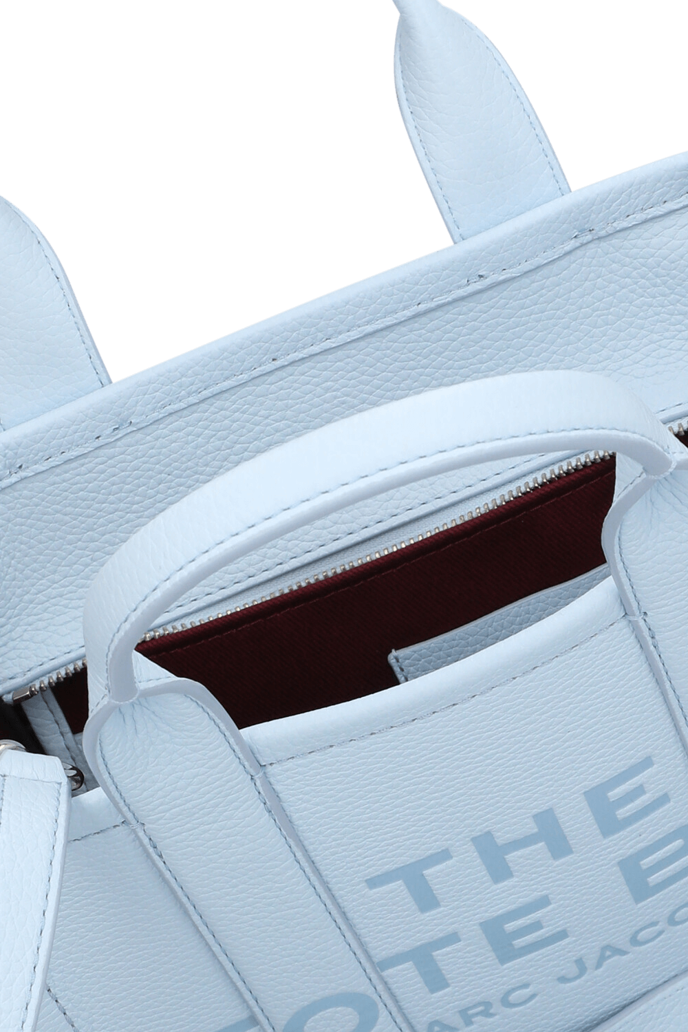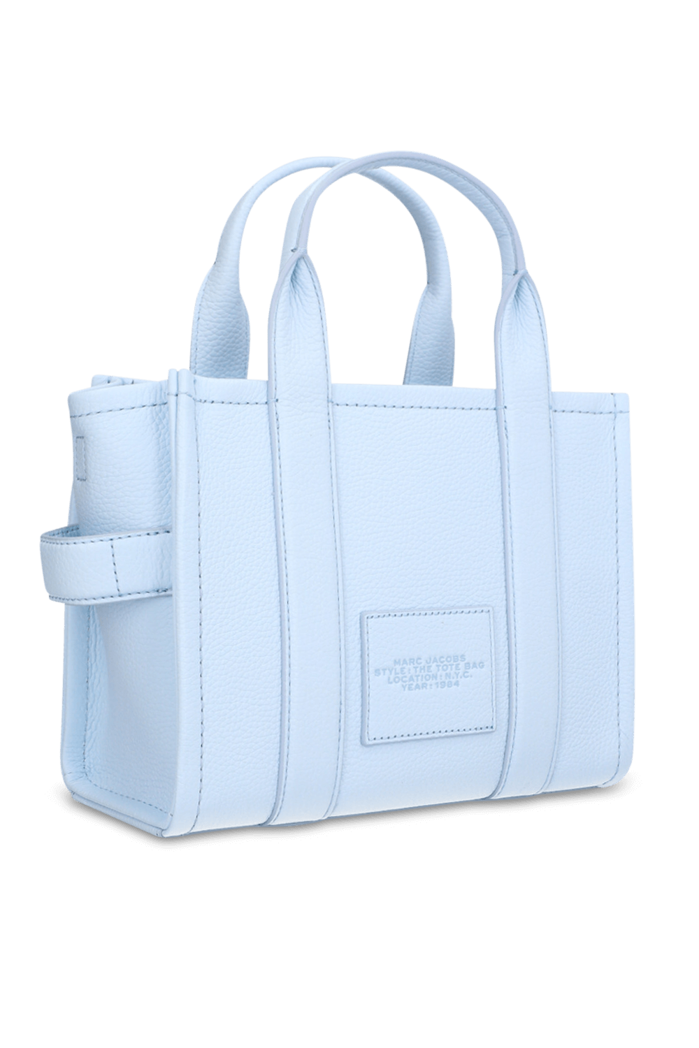 תיק Tote בגודל סמול מבית Marc Jacobs, עשוי עור בצבע כחול סביר. לתיק בטנה בצבע בורדו עם תא מרכזי בסגירת רוכסן, בשילוב זוג ידיות אחיזה ורצועת נשיאה מתכווננת הניתנת להסרה.