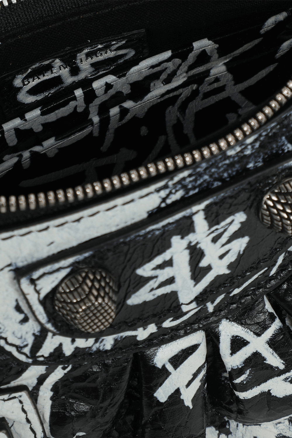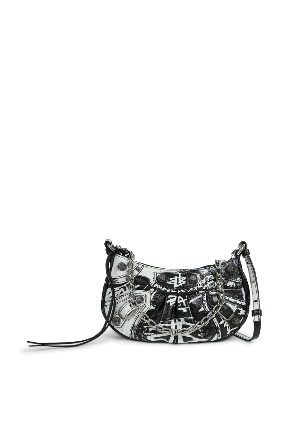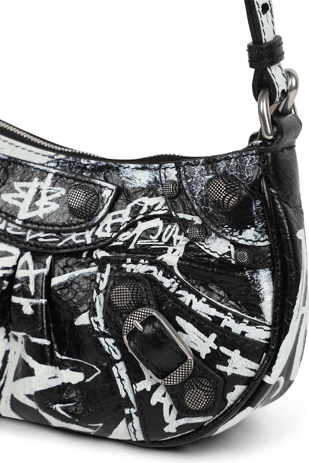 תיק צד מדגם Le Cagole בעיצוב בית האופנה הצרפתי Balenciaga. זהו דגם בגודל קטן העשוי מעור איכותי בגווני שחור ולבן ובעיצוב גרפיטי מסחרר, לצד מראה מקומט ואלמנטים מטאליים כסופים המעניקים לו סטייל נחשק. לתיק רצועת נשיאה ארוכה ומתכווננת המאפשרת את נשיאתו כתיק צד או כקרוס, לצד שרשרת נשיאה כסופה, ולו ארנק ומראת לב קטנה נשלפים החותמים את עיצובו.