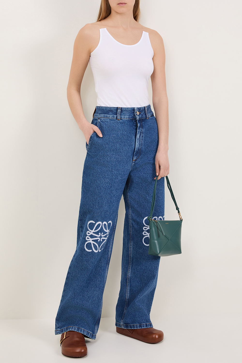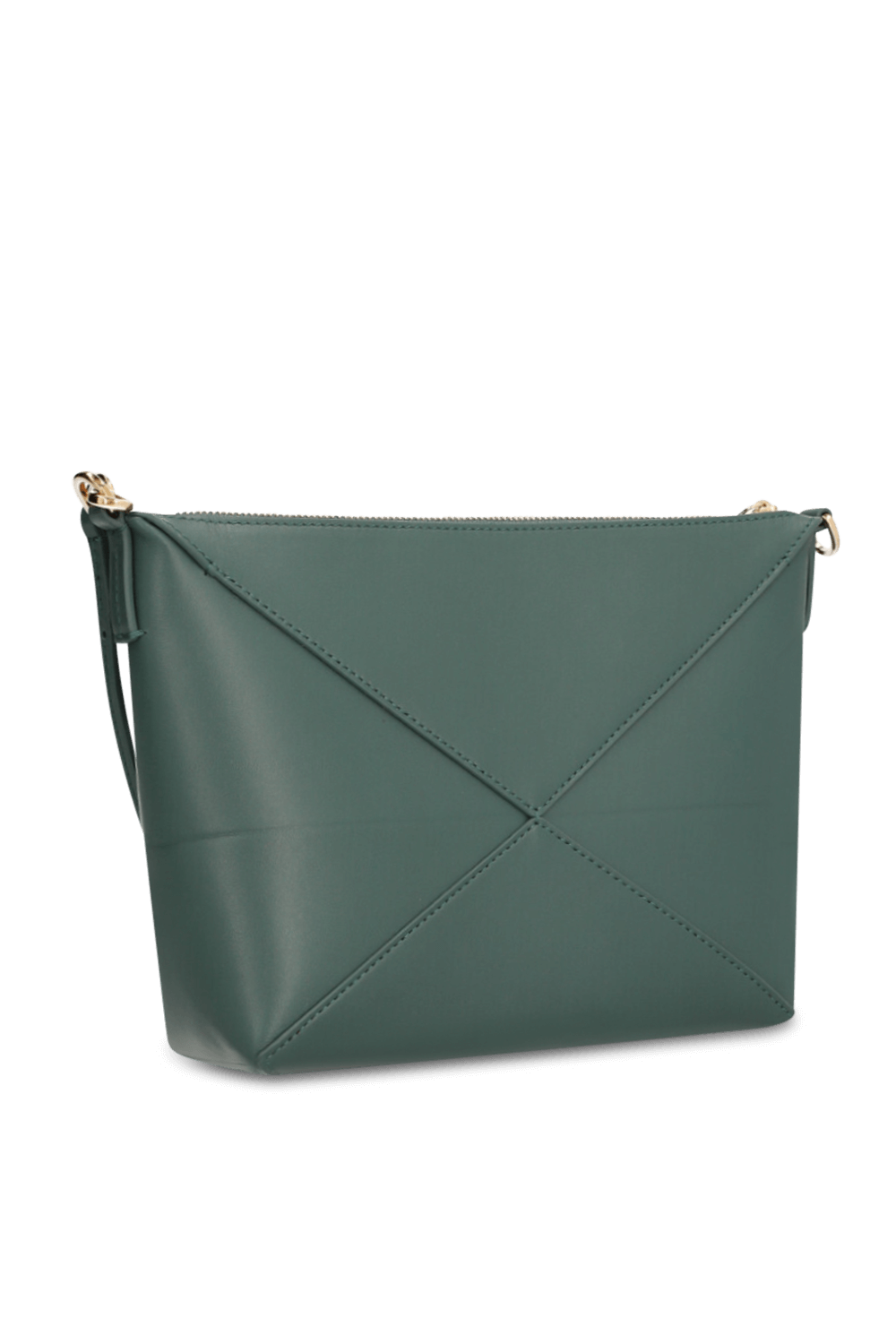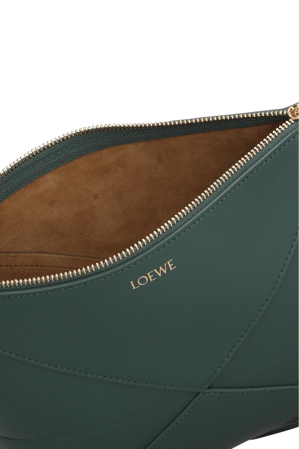 תיק כתף מסדרת הפאזל האייקונית של מותג היוקרה Loewe. הוא עשוי עור בצבע ירוק עם בטנת זמש ורצועת נשיאה הניתנת להסרה, כך שאפשר לשאת אותו כקאלץ'..
