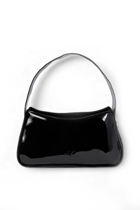 תיק כתף מבית Calvin Klein, עשוי פוליאוריתן בצבע שחור בשילוב תא מרכזי בסגירת רוכסן ובעיצוב קשירה ברצועת הכתף.