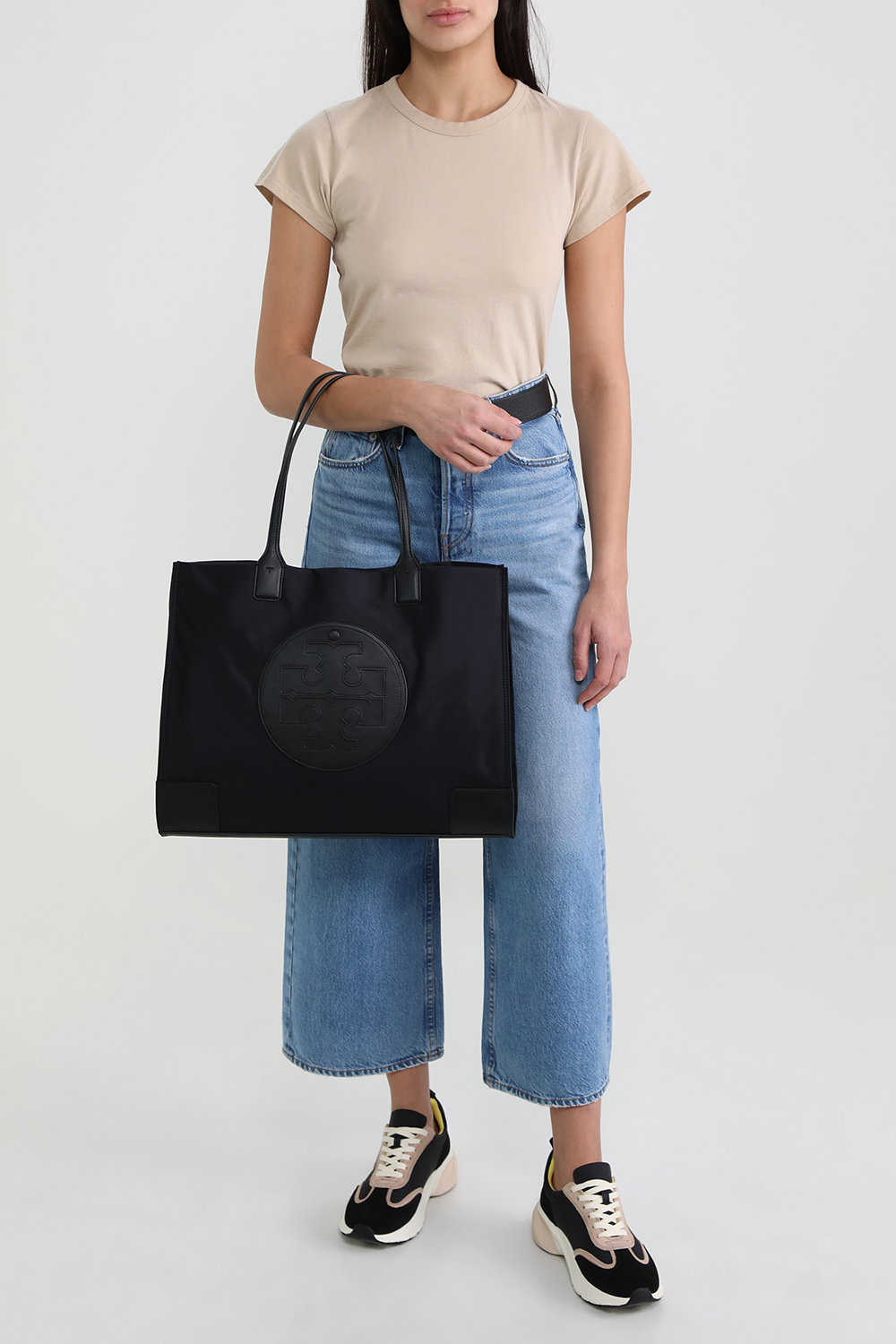 תיק נשיאה שיקי בעיצוב ביית האופנה היוקרתי טורי ברץ`. דגם העשוי מ-100% ניילון ממוחזר בגוון שחור, המציג צללית מרובעת הכולל שתי ידיות עגולות בעוד שסמל המותג רקום בחזית בגוון זהה. התיק מאובזר בתא מרכזי גדול פלוס כיס מרוכסן שיכילו את כל חפצייך בפרקטיות ובנוחות. פריט סטייליש שילווה אותך במקסימום סטייל לעבודה ובשעות היום.