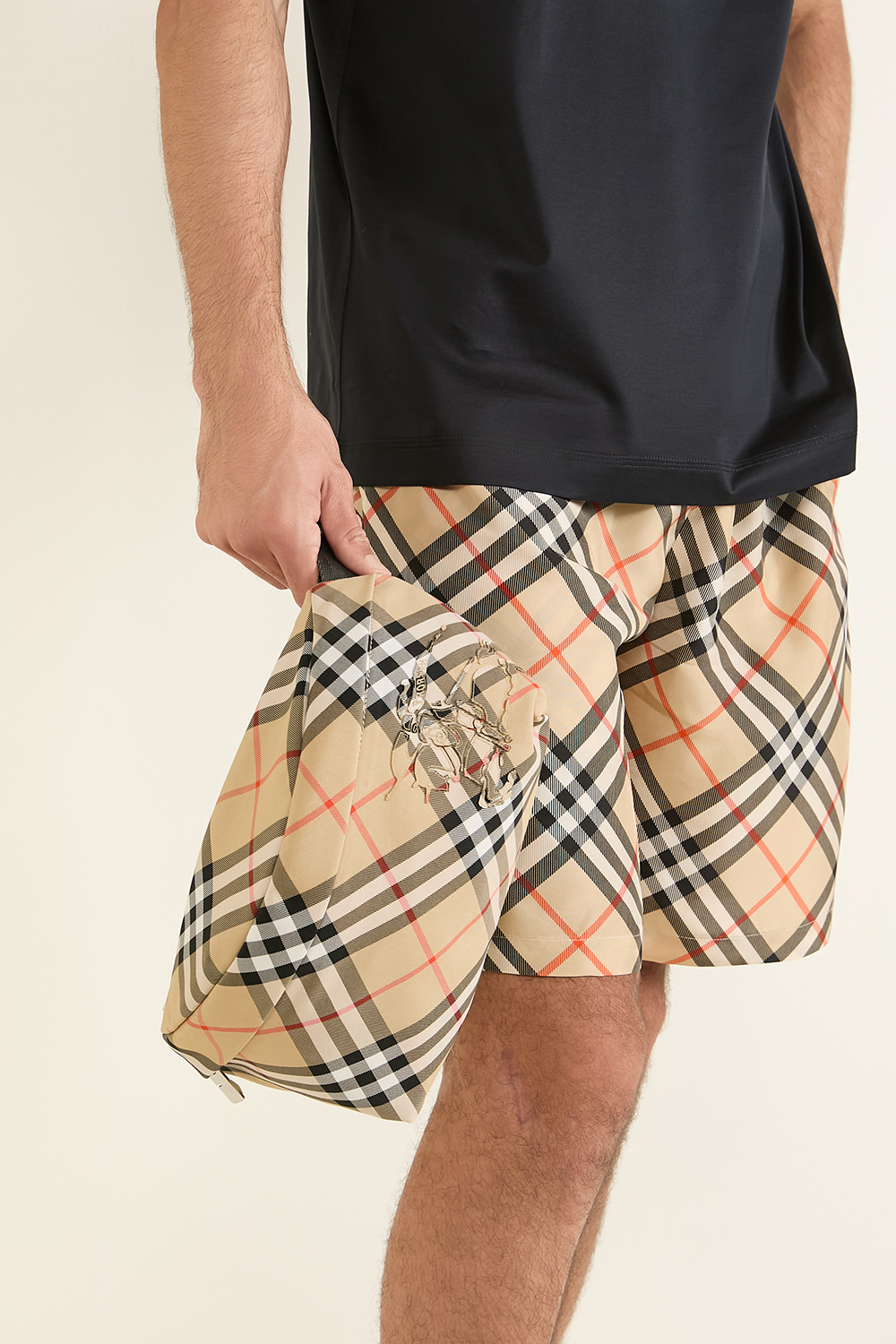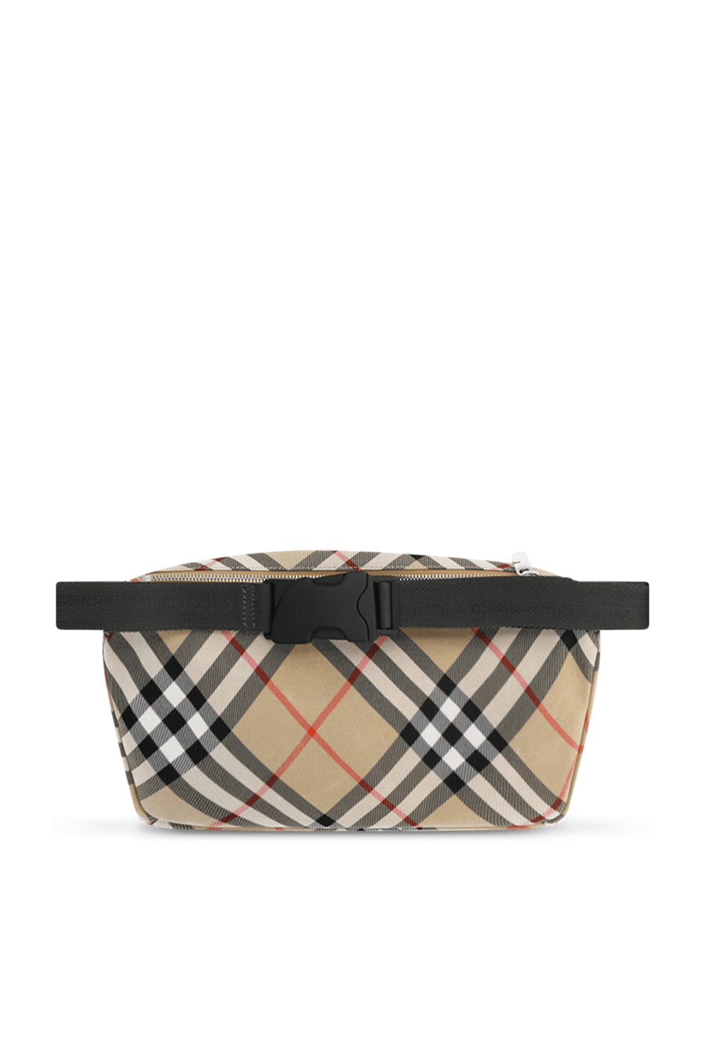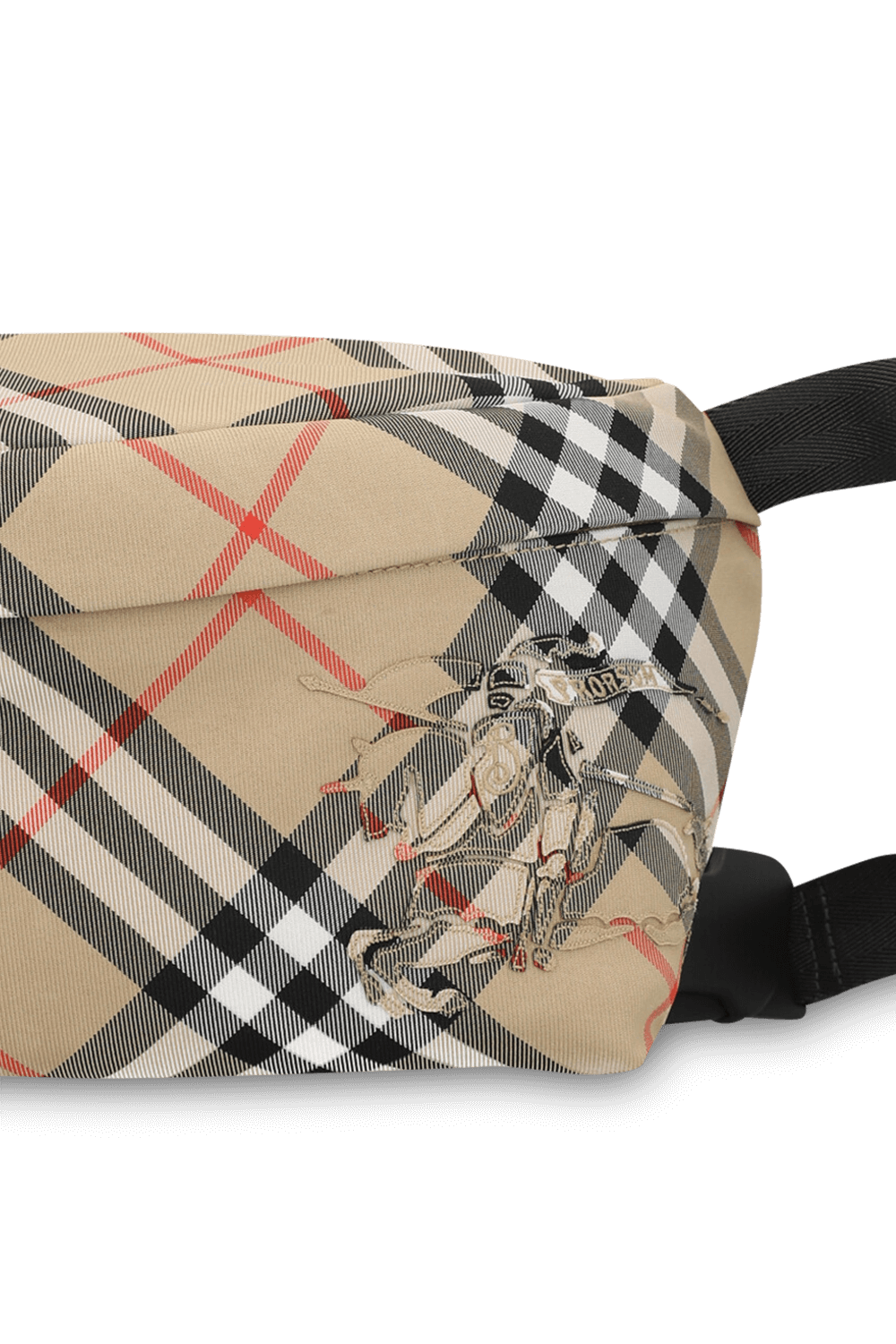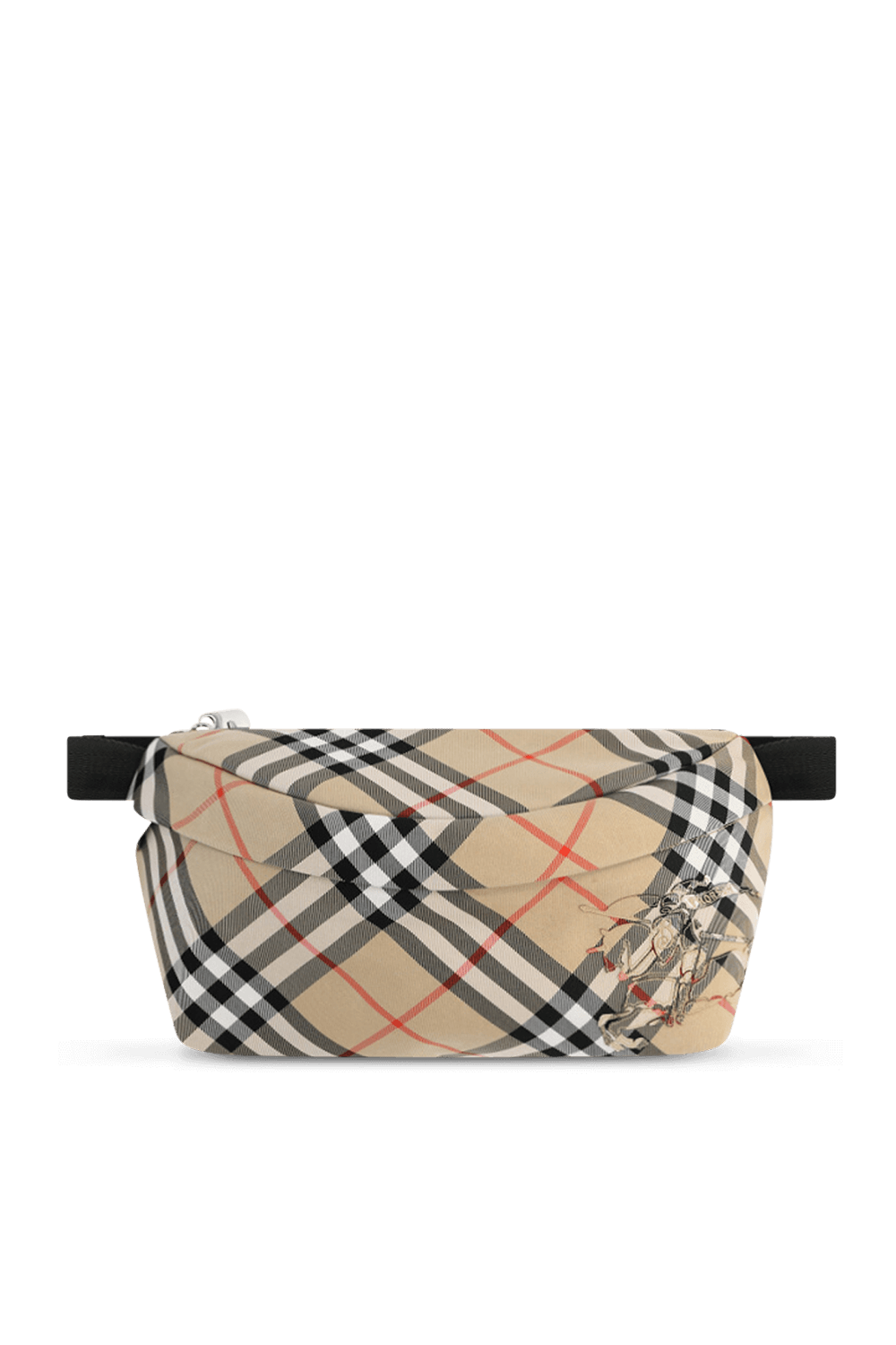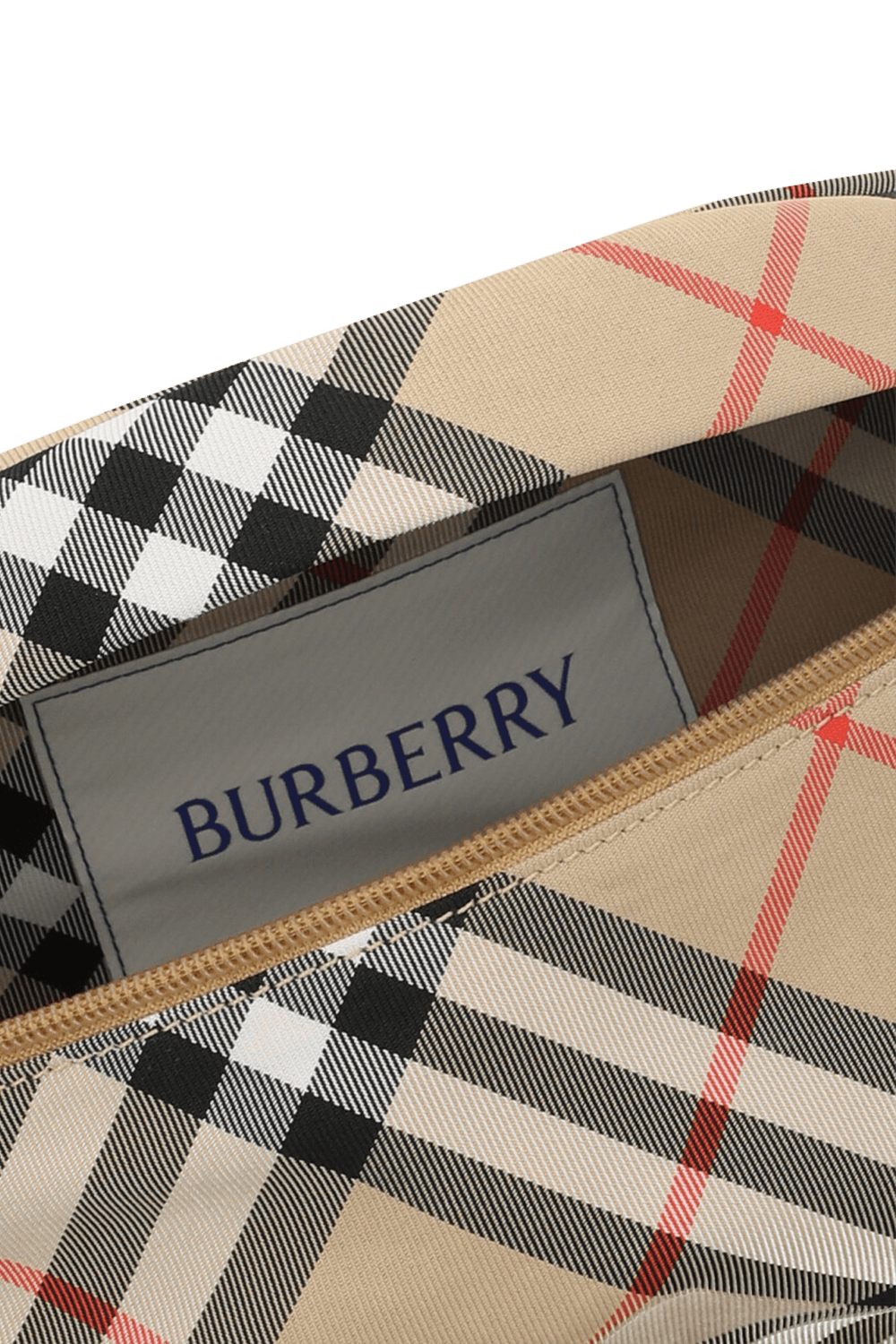 תיק פאוץ' מבית Burberry, עשוי תערובת פוליאסטר ופוליאוריתן בהדפס המשבצות האייקוני ובשילוב רקמת הפרש עם תא מרכזי בסגירת רוכסן.