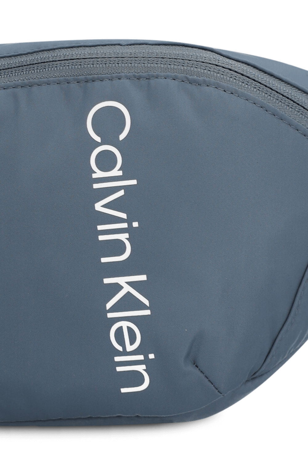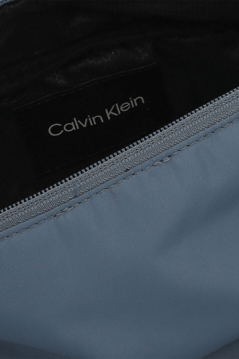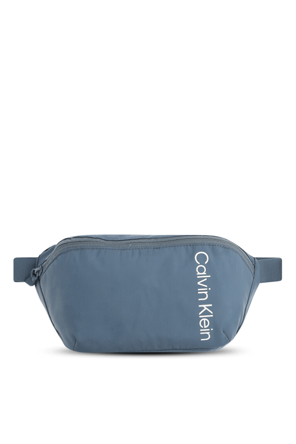 תיק פאוץ' מבית Calvin Klein, עשוי פוליאסטר ממוחזר בצבע כחול עם הדפס לוגו בחזית, סגירת רוכסן ורצועה מתכווננת.