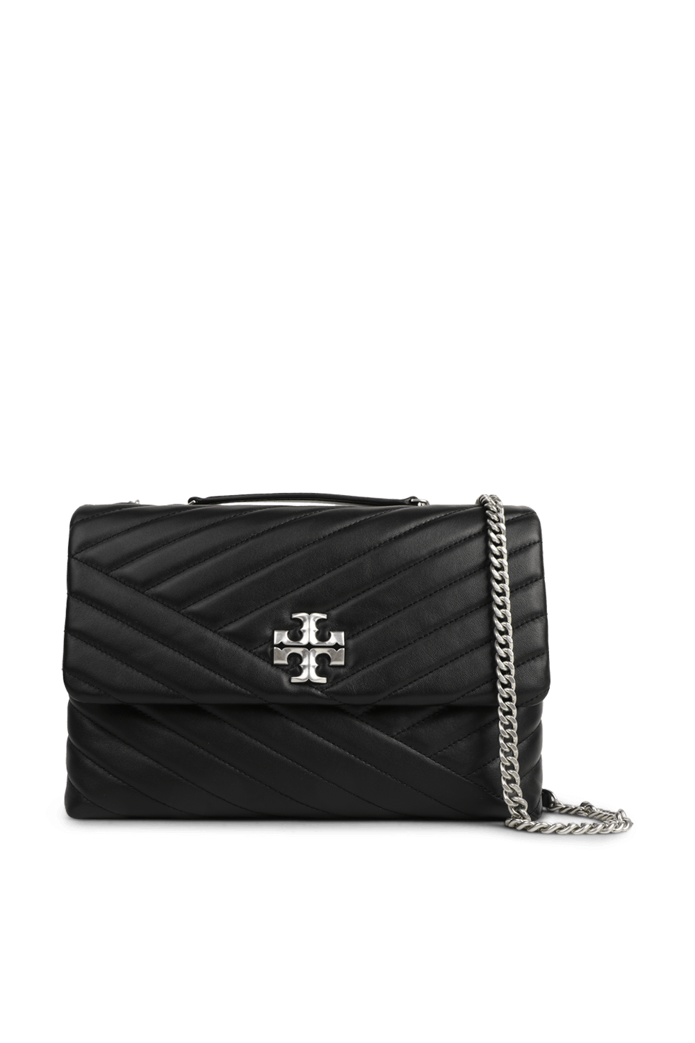 תיק מדגם Kira מבית Tory Burch היוקרתי, העשוי 100% עור משובח ומרופד בגוון שחור קלאסי עם תפרי קווילט אלכסוניים למראה יוקרתי במיוחד. לתיק תא מרכזי מרווח פלוס תא מרוכסן פנימי, בעוד שאלמנט מטאלי מוזהב בצורת לוגו המותג ממוקם בחזית לצד שרשרת נשיאה כסופה חותמים את סגנונו האלגנטי .