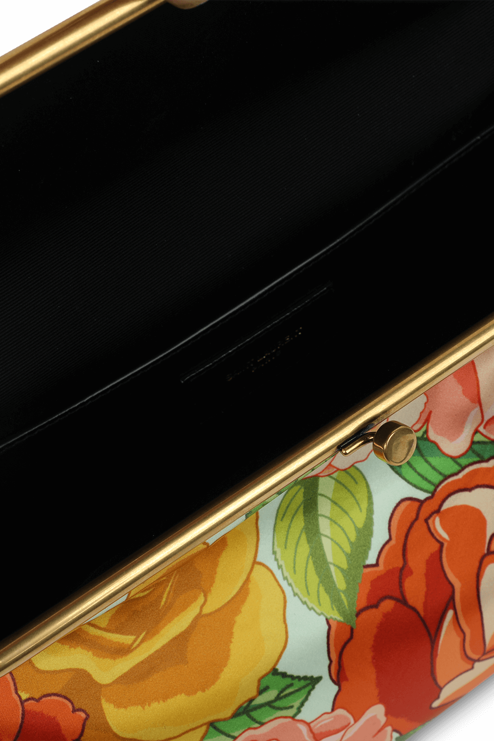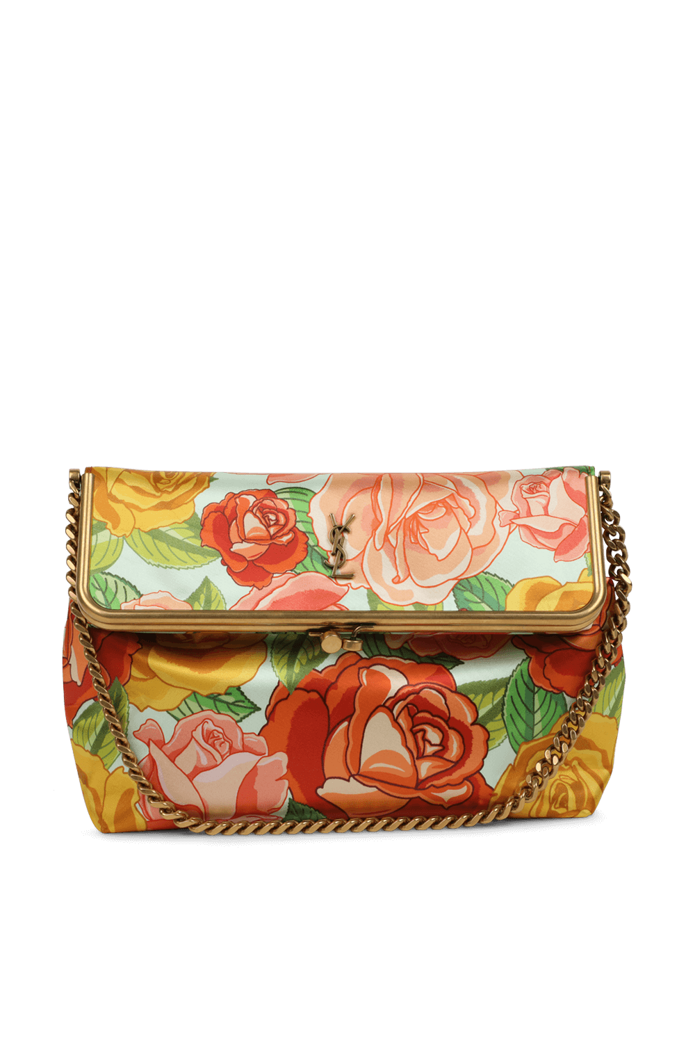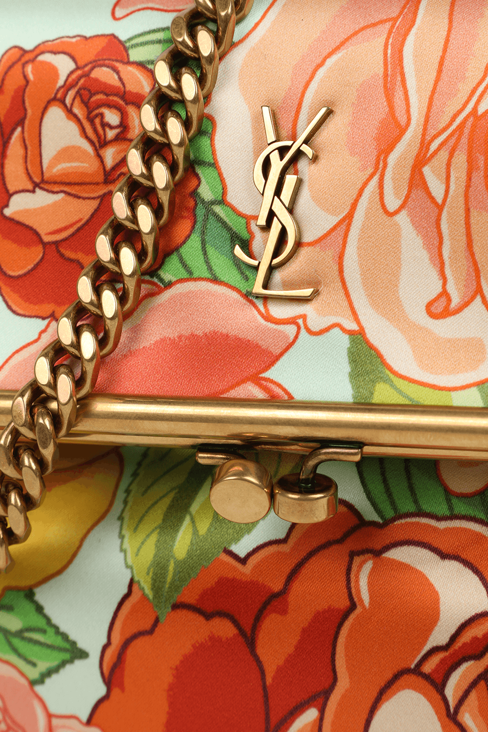 תיק קלאץ'' פרחוני בעיצוב בית אופנת-העל הפריזאי סן לורן, העשוי מטקסטיל רך ונעים בעל פרינט פרחוני בגווני אדום וורוד מעוטר במתכת זהובה ושיקית לצד אלמנט מטאלי זהוב בחזית בחיתוך מונוגרמי. לפריט בטנה מרופדת איכותית בגוון שחור וכיס פנימי שיכיל את חפצייך בקלות ובשיא הסטייל.