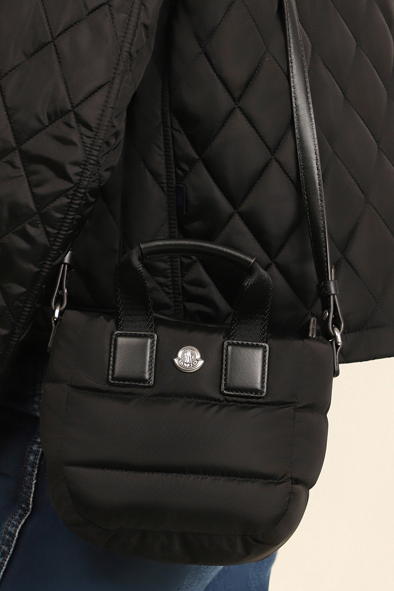 תיק קרוסבודי Caradoc בגודל מיני המעוצב בהשראת מעילי הפוך של Moncle. הוא עשוי ניילון עמיד במים בצבע שחור ובמילוי נוצות פוך טבעיות, עם ביטנת כותנה. התיק נסגר ברוכסן ויש לו שתי ידיות אחיזה ורצועת נשיאה ארוכה הניתנת להסרה.