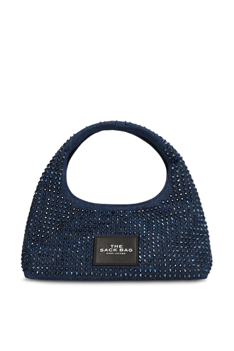 תיק קרוסבודי The Mini Bag מבית Marc Jacobs, עשוי כותנת דנים בצבע כחול בשילוב רקמת לוגו המותג במרכז. לתיק תא מרכזי בסגירת מגנט ובו חריצים לכרטיסים, כשרצועת הנשיאה עשויה שרשראות כסופות.
