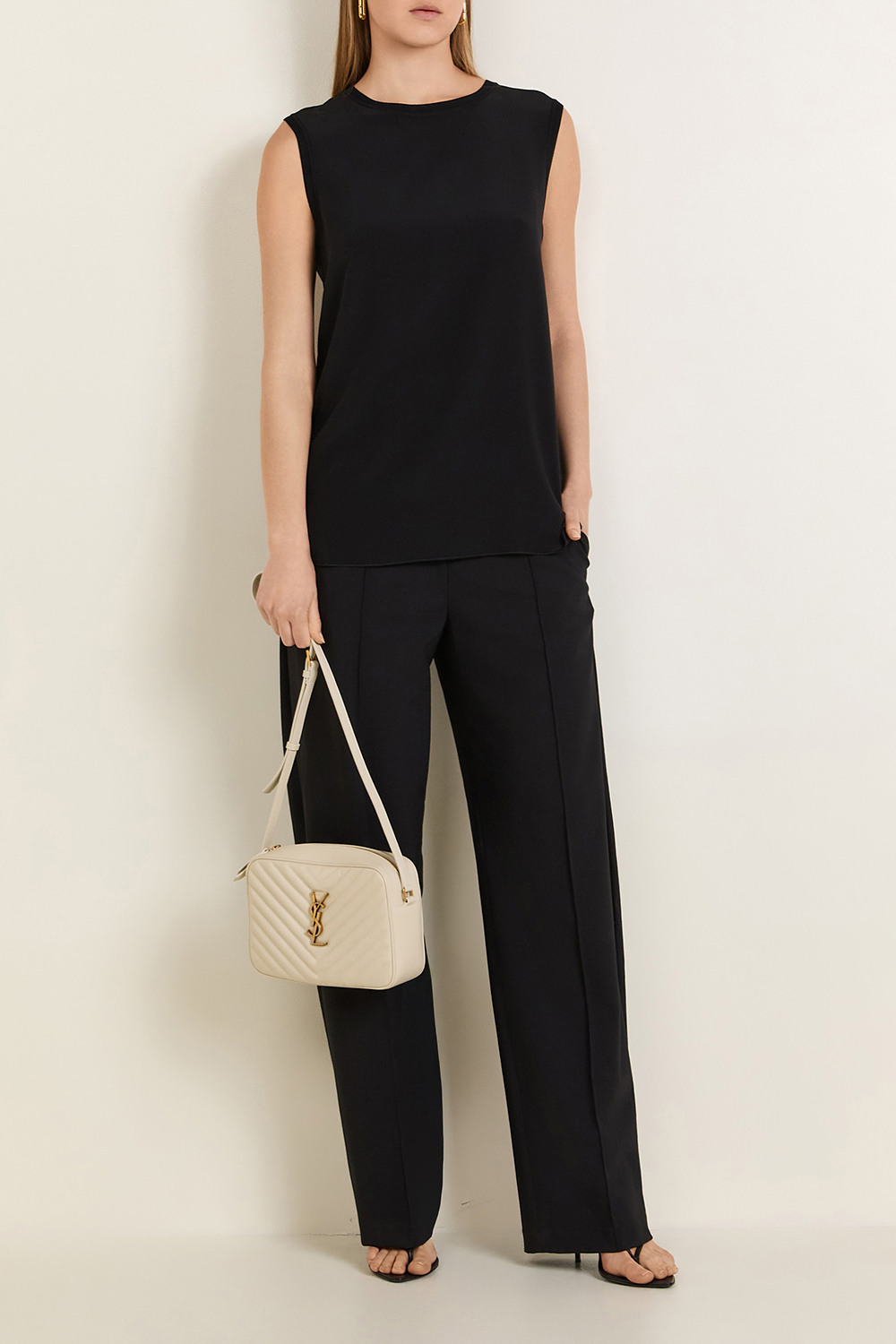 תיק קרוסבודי מבית Saint Laurent, עשוי עור בצבע אוף וויט ובעיצוב תיפורים כשלוגו המותג מוטבע בחזית. לתיק תא אחסון מרכזי בסגירת רוכסן ובו כיס פנימי בשילוב תא חיצוני בגב התיק, עם רצועת נשיאה מתכווננת.
