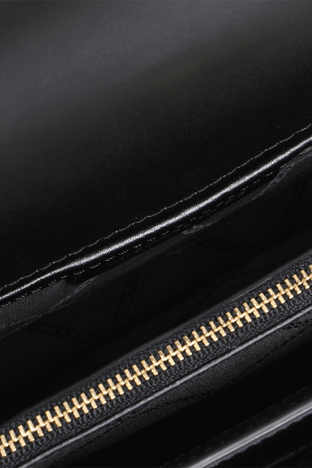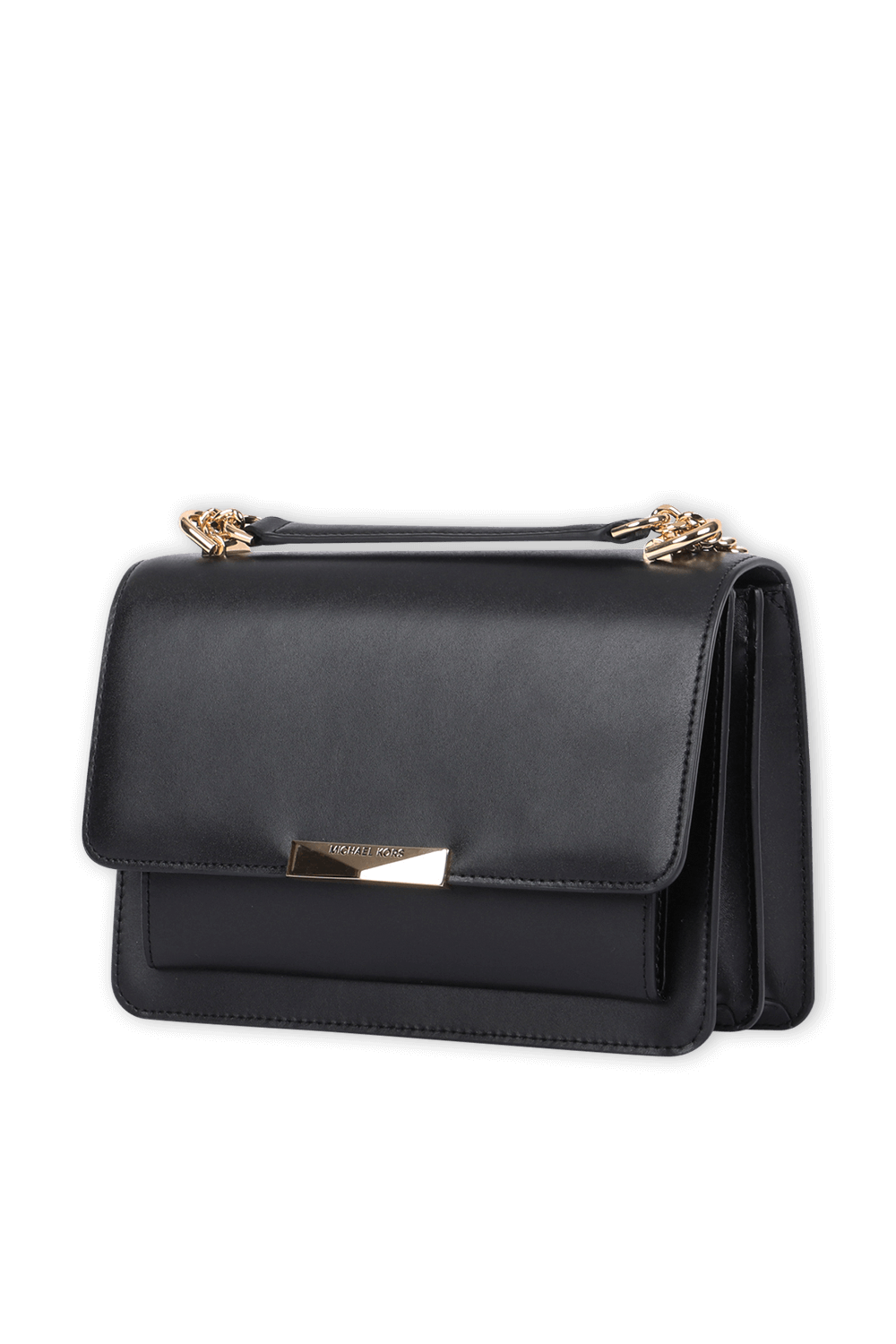 תיק שחור אלגנטי מבית האופנה האמריקאי Michael Kors, העשוי מ-100% עור חלק ומשובח עם צללית מתקפלת ולוחית לוגו מטאלית בחזיתו, בעוד ששם המותג מעטר את חלקו האחורי בעיצוב מטאלי זהוב. שרשרת ארוכה ומתקפלת מאפשרת נשיאתו כקרוס או כתיק צד, וחלוקתו כוללת שלושה תאים נפרדים שביניהם ממוקם כיס מרוכסן.