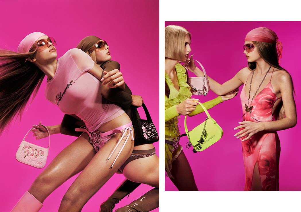 קולקציית הקיץ החדשה מביאה את נרטיב ה-Y2K בצורה כה מרהיבה, עד שאפשר להכריז עליו כנושא תקן הרנסנס הרשמי של התופעה. בין הלהיטים ניתן למצוא התייחסות לגזרת מותן נמוכה במכנסיים ארוכים או קצרצרים בגימור שוליים פרומים, בשילוב חרוזים הנלבשים עם חגורות בעלות אבזם פרפר. עוד בולטים: שמלות שיפון סמי שקופות בגוונים של חום, ורוד וליים, מכנסי קרגו מבריקים, קרדיגנים מינימליסטיים לצד אזכורים פרחוניים ושפע קישוטים המעניקים תחושה של תנועה בלתי פוסקת.