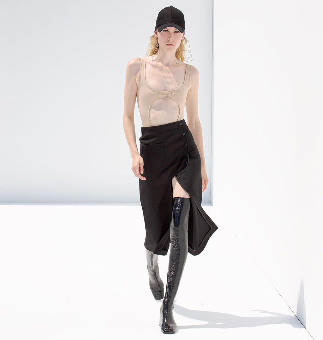 הדגמים המוצלחים מציגים אזכורים לשפת דנים אורבנית, הבאים לידי ביטוי בז'קט עור שחור או בחצאית מקסי עם כפתורים, כמו גם בחצאיות מיני אייקוניות בסילואטת A הנלבשות לצד טופים בגזרות קאט-אאוט בגווני לבן, אדום ושחור בוהקים. אחד הלהיטים הנועזים בקולקציה הם מגפי הירך השחורים, שמוצעים בוורסיות של מבריק או מאט, ומציגים שיק ארכיטקטוני עם עקב וחרטום ריבועיים.